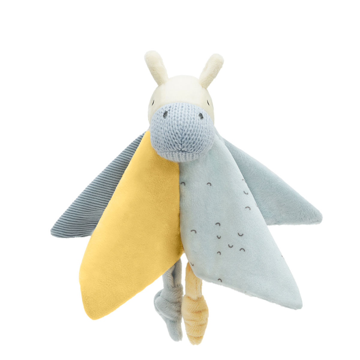 Πανάκι παρηγοριάς της εταιρείας Kikka Boo σε εκρού-γαλάζιο χρώμα με κίτρινες λεπτομέρειες. Κατασκευασμένο από ασφαλή υλικά υψηλής ποιότητας και εγκεκριμένο σύμφωνα με το πρότυπο EN 71. Έχει ενσωματωμένο κουδουνάκι που παράγει απαλό ήχο με την κίνηση και διαφορετικές υφές που τραβούν την περιέργεια του μωρού. Κατάλληλο από την γέννηση.