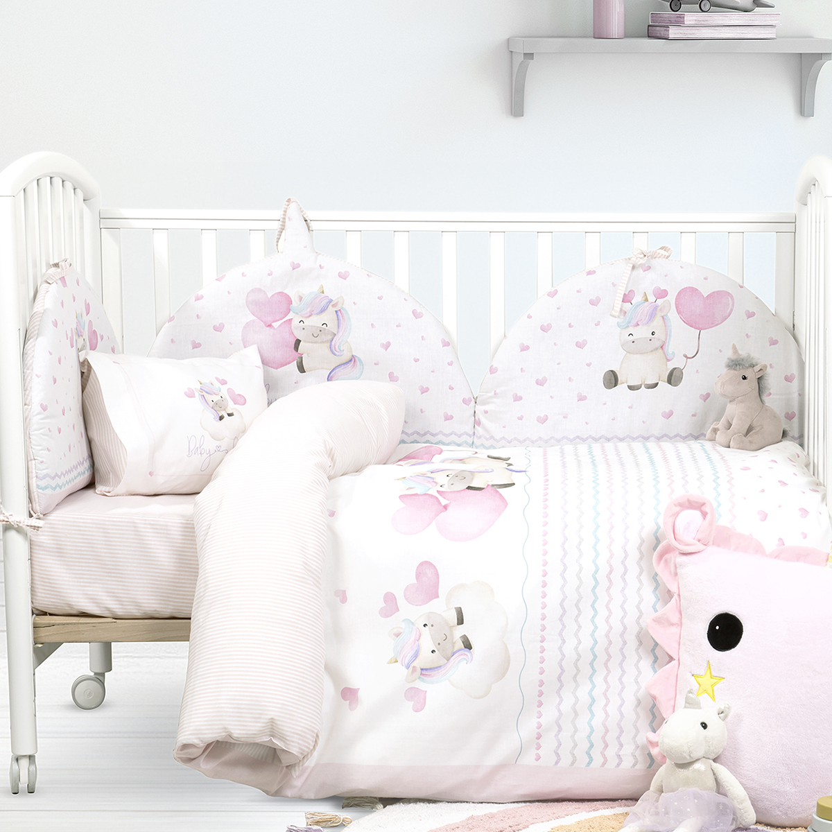 Βρεφική παπλωματοθήκη για την κούνια από την εταιρεία Nima. Σε ροζ χρώμα, με τυρκουάζ λεπτομέρειες και σχέδιο μονόκερο. Η σύνθεσή της είναι 100% βαμβάκι 144 κλωστών, απαλό και ανθεκτικό. Η μαξιλαροθήκη είναι φάκελος με το σχέδιο του πανωσέντονου. Στο κάτω μέρος κλείνει με φερμουάρ. Είναι διπλής όψης, η μία μεριά έχει το σχέδιο του πανωσέντονου και η άλλη το σχέδιο του κατωσέντονου. Συνδυάστε την με τα υπόλοιπα είδη της ίδιας σειράς για ένα ολοκληρωμένο αποτέλεσμα.