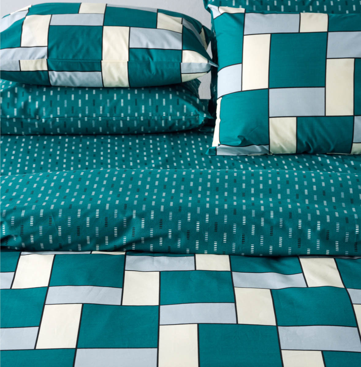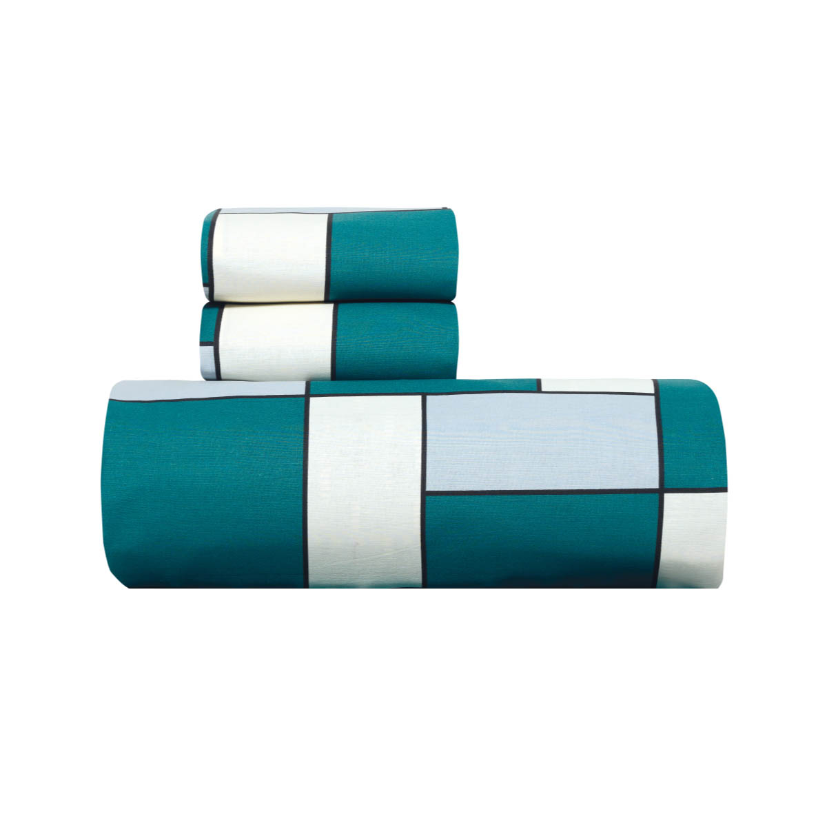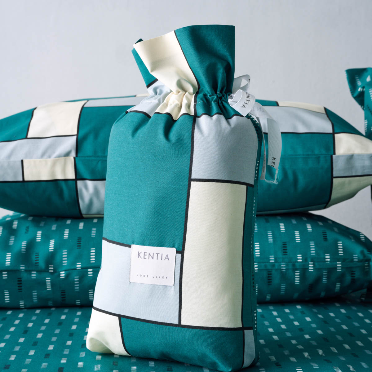 Σετ μονή παπλωματοθήκη από την εταιρεία Kentia με γεωμετρικό σχέδιο σε πετρόλ-εκρού χρώμα και γκρι λεπτομέρειες. Το ύφασμα είναι 100% βαμβάκι 150 κλωστών, απαλό και ανθεκτικό. Είναι διπλής όψης, η μία μεριά έχει το σχέδιο του πανωσέντονου και η άλλη το σχέδιο του κατωσέντονου. Η μαξιλαροθήκη είναι φάκελος και έχει το σχέδιο του πανωσέντονου. Συνδυάστε την με τα υπόλοιπα προϊόντα του ίδιου σετ για ένα ολοκληρωμένο αποτέλεσμα.**Το σχέδιο στην μαξιλαροθήκη ενδέχεται να διαφέρει από αυτό της φωτογραφίας καθώς η εταιρεία παράγει μαξιλαροθήκες από όλο το σχέδιο του υφάσματος και τις συσκευάζει με τυχαία σειρά. **
