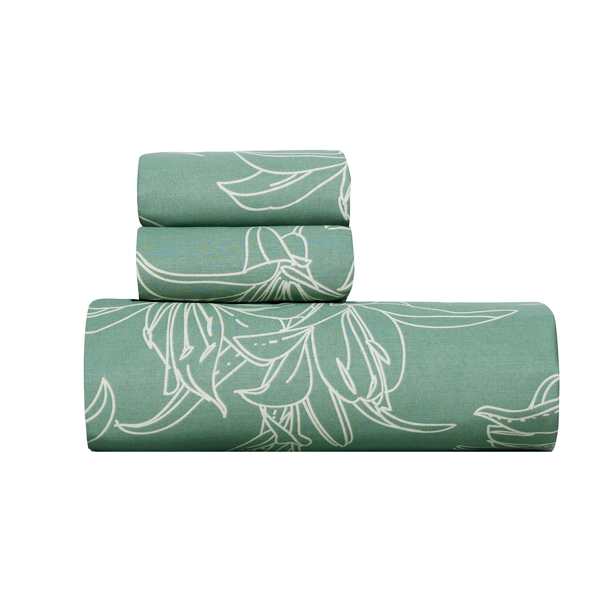 Σετ υπέρδιπλη παπλωματοθήκη από την εταιρεία Kentia σε πράσινο χρώμα με λευκές λεπτομέρειες και φλοράλ σχέδιο. Το ύφασμα είναι 100% βαμβάκι 150 κλωστών, απαλό και ανθεκτικό. Είναι διπλής όψης, η μία μεριά έχει το σχέδιο του πανωσέντονου και η άλλη το σχέδιο του κατωσέντονου. Οι μαξιλαροθήκες είναι φάκελος και έχουν το σχέδιο του πανωσέντονου. Συνδυάστε την με τα υπόλοιπα προϊόντα του ίδιου σετ για ένα ολοκληρωμένο αποτέλεσμα.**Το σχέδιο στις μαξιλαροθήκες ενδέχεται να διαφέρει από αυτό της φωτογραφίας καθώς η εταιρεία παράγει μαξιλαροθήκες από όλο το σχέδιο του υφάσματος και τις συσκευάζει με τυχαία σειρά. **