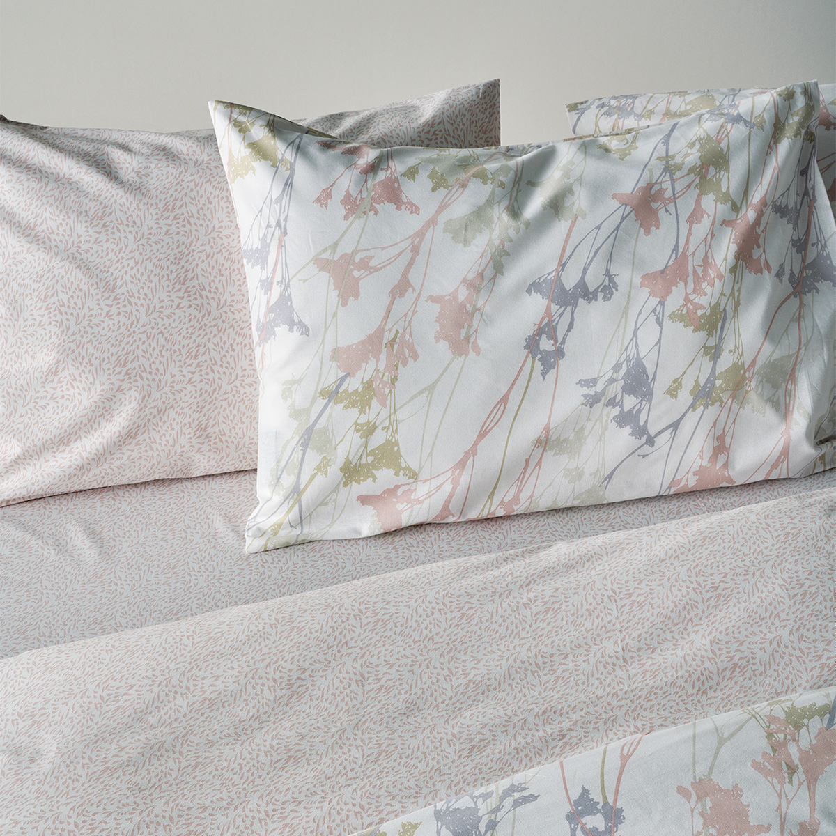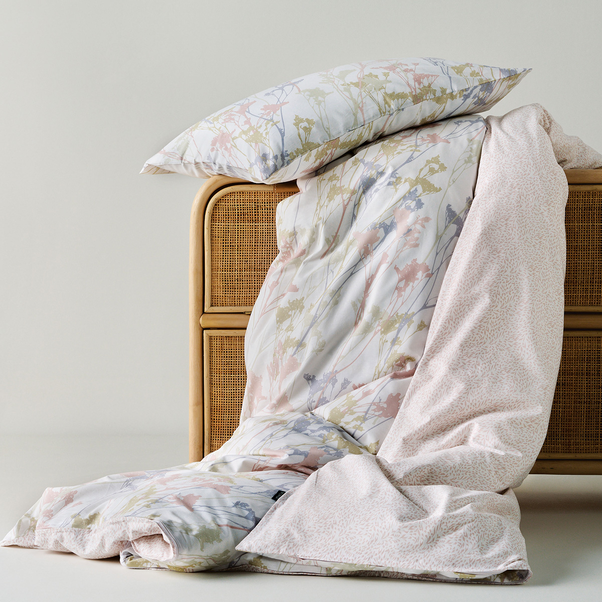 Σετ υπέρδιπλη παπλωματοθήκη από την εταιρεία Kentia, σε μπεζ χρώμα με φλοράλ σχέδιο σε ροζ-γαλάζιες-μπεζ αποχρώσεις. Η άλλη όψη είναι ροζ με μοντέρνο λευκό μοτίβο. Το ύφασμα είναι κατασκευασμένο από 100% βαμβάκι 150 κλωστών με απαλή υφή. Οι μαξιλαροθήκες είναι φάκελος, με το σχέδιο του πανωσέντονου. Είναι διπλής όψης, η μία μεριά έχει το σχέδιο του πανωσέντονου και η άλλη το σχέδιο του κατωσέντονου. Συνδυάστε την με τα υπόλοιπα προϊόντα του ίδιου σετ για ένα ολοκληρωμένο αποτέλεσμα.