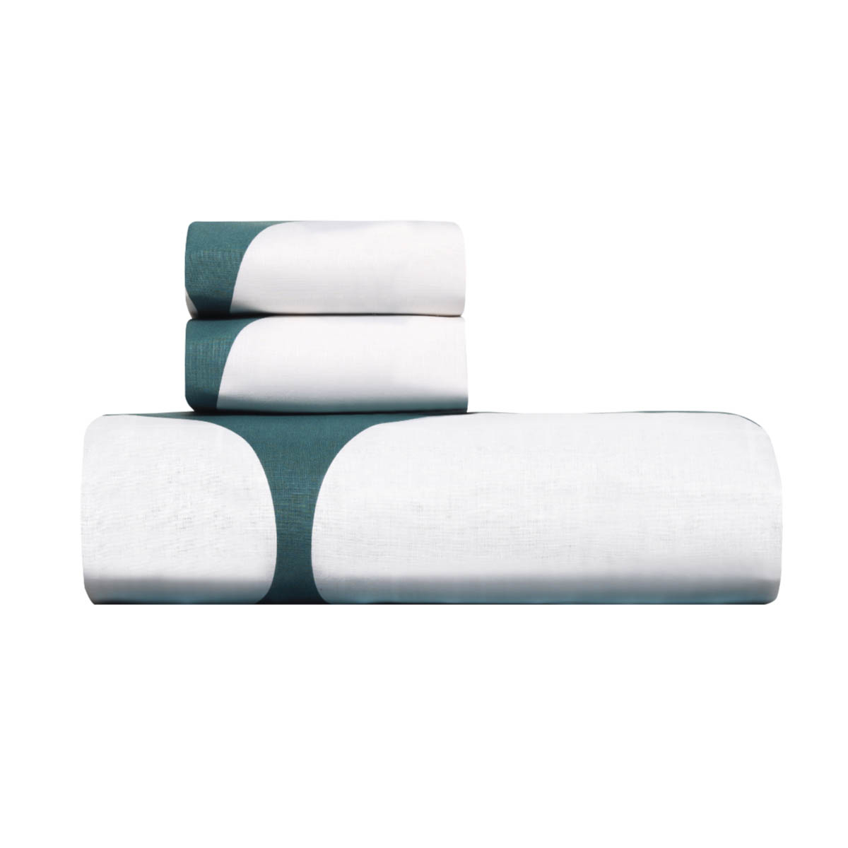 Σετ υπέρδιπλη παπλωματοθήκη από την εταιρεία Kentia με γεωμετρικό σχέδιο σε πετρόλ-εκρού χρώμα. Το ύφασμα είναι 100% βαμβάκι 150 κλωστών, απαλό και ανθεκτικό. Είναι διπλής όψης, η μία μεριά έχει το σχέδιο του πανωσέντονου και η άλλη το σχέδιο του κατωσέντονου. Οι μαξιλαροθήκες είναι φάκελος και έχουν το σχέδιο του πανωσέντονου. Συνδυάστε την με τα υπόλοιπα προϊόντα του ίδιου σετ για ένα ολοκληρωμένο αποτέλεσμα.**Το σχέδιο στις μαξιλαροθήκες ενδέχεται να διαφέρει από αυτό της φωτογραφίας καθώς η εταιρεία παράγει μαξιλαροθήκες από όλο το σχέδιο του υφάσματος και τις συσκευάζει με τυχαία σειρά. **