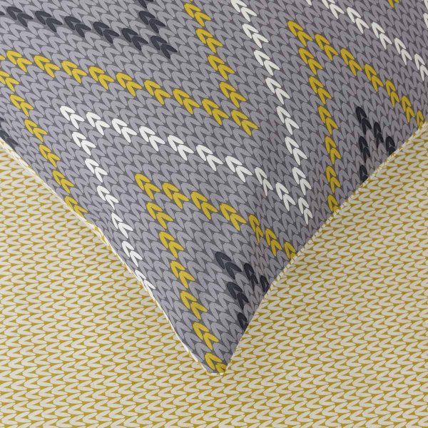 Σετ υπέρδιπλη παπλωματοθήκη διπλής όψης από την εταιρεία Kocoon. Η μια πλευρά είναι σε γκρι χρώμα, με λευκές-μουσταρδί λεπτομέρειες και γεωμετρικό σχέδιο ενώ η άλλη είναι στο χρώμα της ώχρας με λευκό μοντέρνο σχέδιο. Το ύφασμα είναι 100% βαμβάκι 144 κλωστών που την καθιστά απαλή και ανθεκτική. Στο σετ περιλαμβάνονται οι μαξιλαροθήκες φάκελος διπλής όψης, με τη μία μεριά να έχει το σχέδιο του πανωσέντονου και την άλλη του κατωσέντονου. **Το σχέδιο στις μαξιλαροθήκες ενδέχεται να διαφέρει από αυτό της φωτογραφίας καθώς η εταιρεία παράγει μαξιλαροθήκες από όλο το σχέδιο του υφάσματος και τις συσκευάζει με τυχαία σειρά.** Συνδυάστε την με τα υπόλοιπα είδη του ίδιου σχεδίου για ένα ολοκληρωμένο αποτέλεσμα.