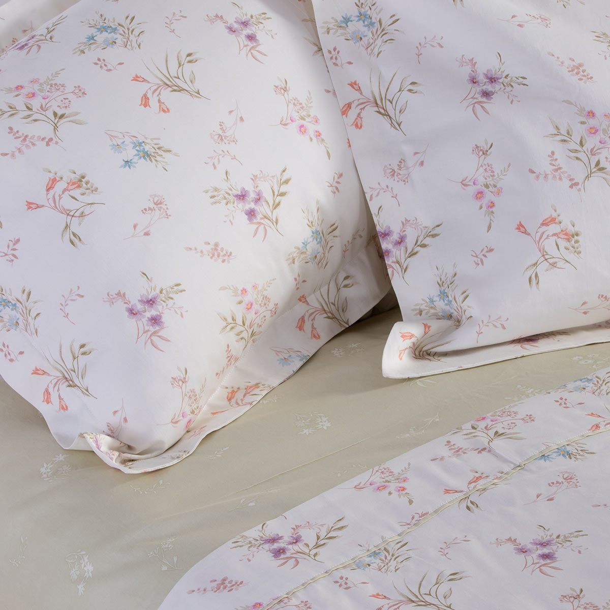 Παπλωματοθήκη υπέρδιπλη σετ της εταιρείας Nef-Nef με εκρού φόντο και πολύχρωμο φλοράλ σχέδιο. Είναι κατασκευασμένη από 100% βαμβακοσατέν πενιέ 210 κλωστών προσφέροντας απαλότητα και πολυτέλεια. Στο σετ περιλαμβάνονται οι μαξιλαροθήκες oxford με το σχέδιο του πανωσέντονου. Η παπλωματοθήκη είναι διπλής όψης αφού από την μια πλευρά έχει το σχέδιο του πανωσέντονου ενώ η άλλη το σχέδιο του κατωσέντονου. Κλείνει με φερμουάρ στο κάτω μέρος.