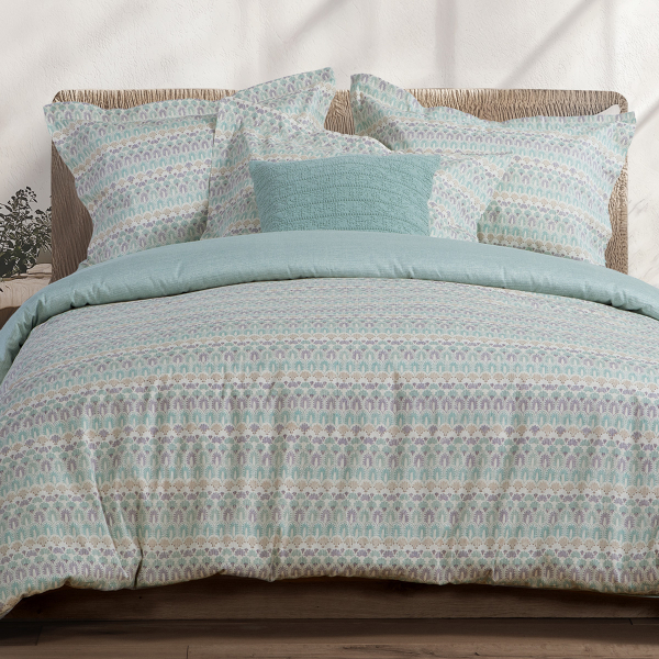 Σετ υπέρδιπλη παπλωματοθήκη από την εταιρεία Nef-Nef σε βεραμάν, λιλά και μπεζ αποχρώσεις με μοντέρνο σχέδιο. Είναι κατασκευασμένη από 100% βαμβακοσατέν 210 κλωστών, εξαιρετικής ποιότητας. Το βαμβακοσατέν προσφέρει μοναδική απαλότητα, διακριτική λάμψη και δροσερή αίσθηση. Οι μαξιλαροθήκες είναι φάκελος με το σχέδιο του πανωσέντονου. Η παπλωματοθήκη είναι διπλής όψης αφού από την μια πλευρά έχει το σχέδιο του πανωσέντονου ενώ η άλλη το σχέδιο του κατωσέντονου. Κλείνει με φερμουάρ στο κάτω μέρος. Δώστε στην κρεβατοκάμαρά σας μία ολοκληρωμένη αισθητική, επιλέγοντας και τα υπόλοιπα προϊόντα του ίδιου σετ. Η εταιρεία Nef-Nef διαθέτει πιστοποίηση Oeko-Tex, που εγγυάται ότι τα προϊόντα της είναι απαλλαγμένα από επιβλαβείς χημικές ουσίες.