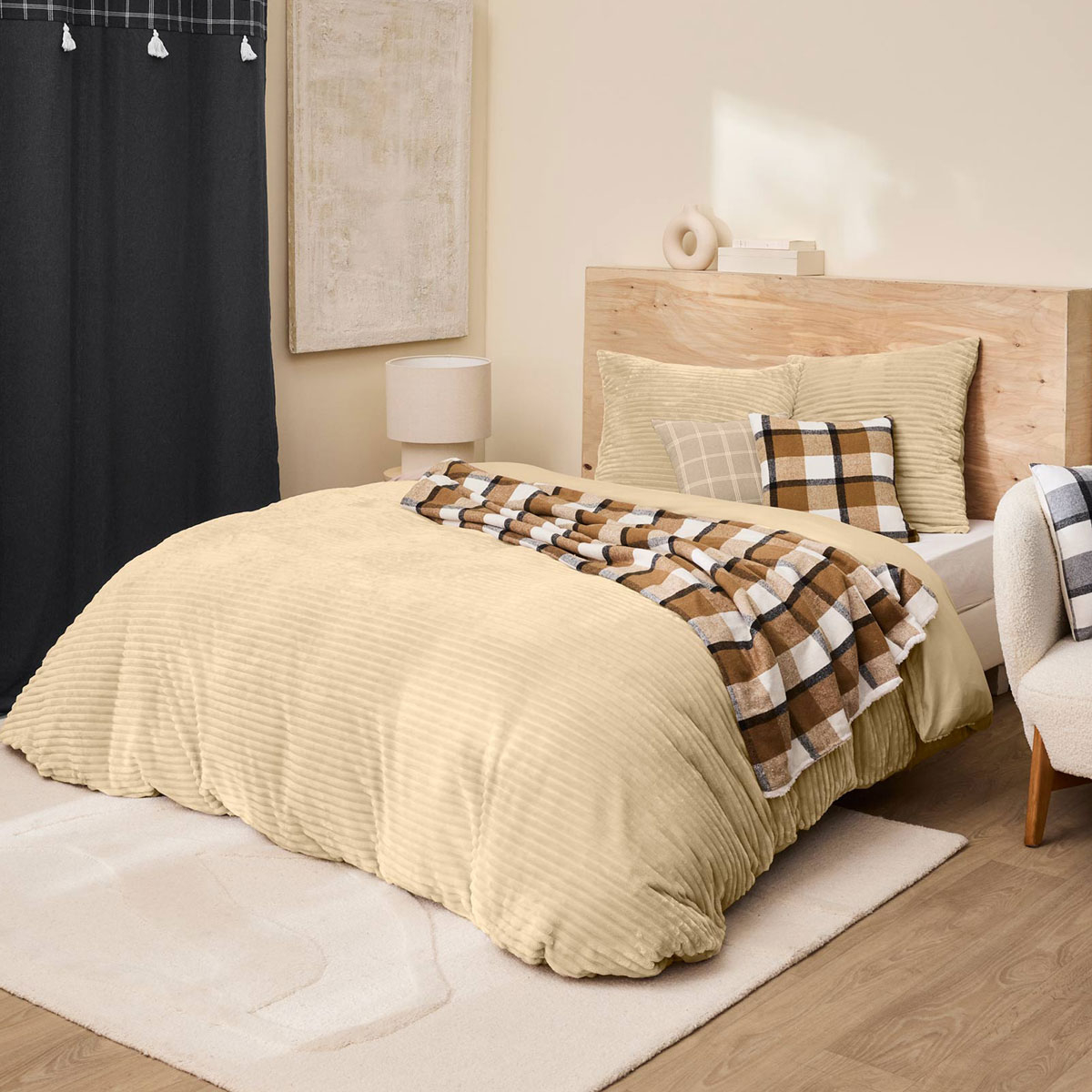 | SpitishopΠαπλωματοθήκη Fleece Υπέρδιπλη (240x220) + Διακοσμητικές Μαξιλαροθήκες L-C Veloutea Sable 1645199