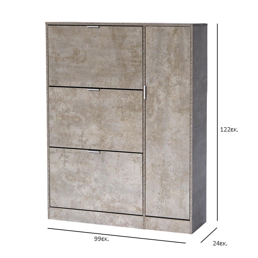 | SpitishopΠαπουτσοθήκη Με 3 Ράφια/18 Θέσεων & Ντουλάπι (99x24x122) Spitishop Gardien Cement