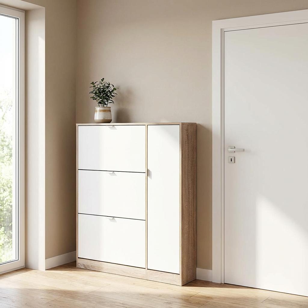 | SpitishopΠαπουτσοθήκη Με 3 Ράφια/18 Θέσεων & Ντουλάπι (99x24x122) Spitishop Gardien Natural/White