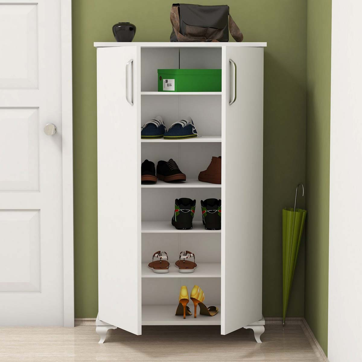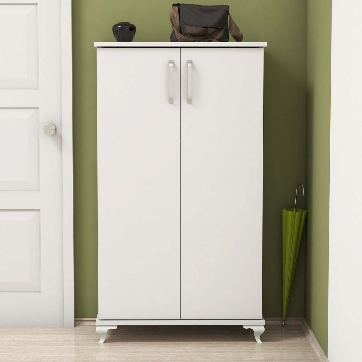 Παπουτσοθήκη - ντουλάπι σε λευκό χρώμα. Εσωτερικά έχει ράφια που προσφέρουν άφθονο χώρο για παπούτσια ή για ότι άλλο θέλετε να τακτοποιήσετε. Κατασκευασμένη από υψηλής ποιότητας ανθεκτιά υλικά για να αντοχή στην καθημερινή χρήση. Το προϊόν έρχεται αμοντάριστο και συναρμολογείται βάσει οδηγιών.
