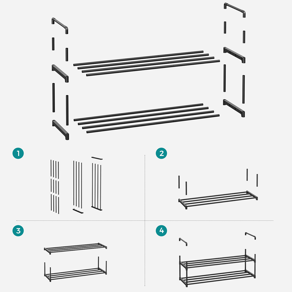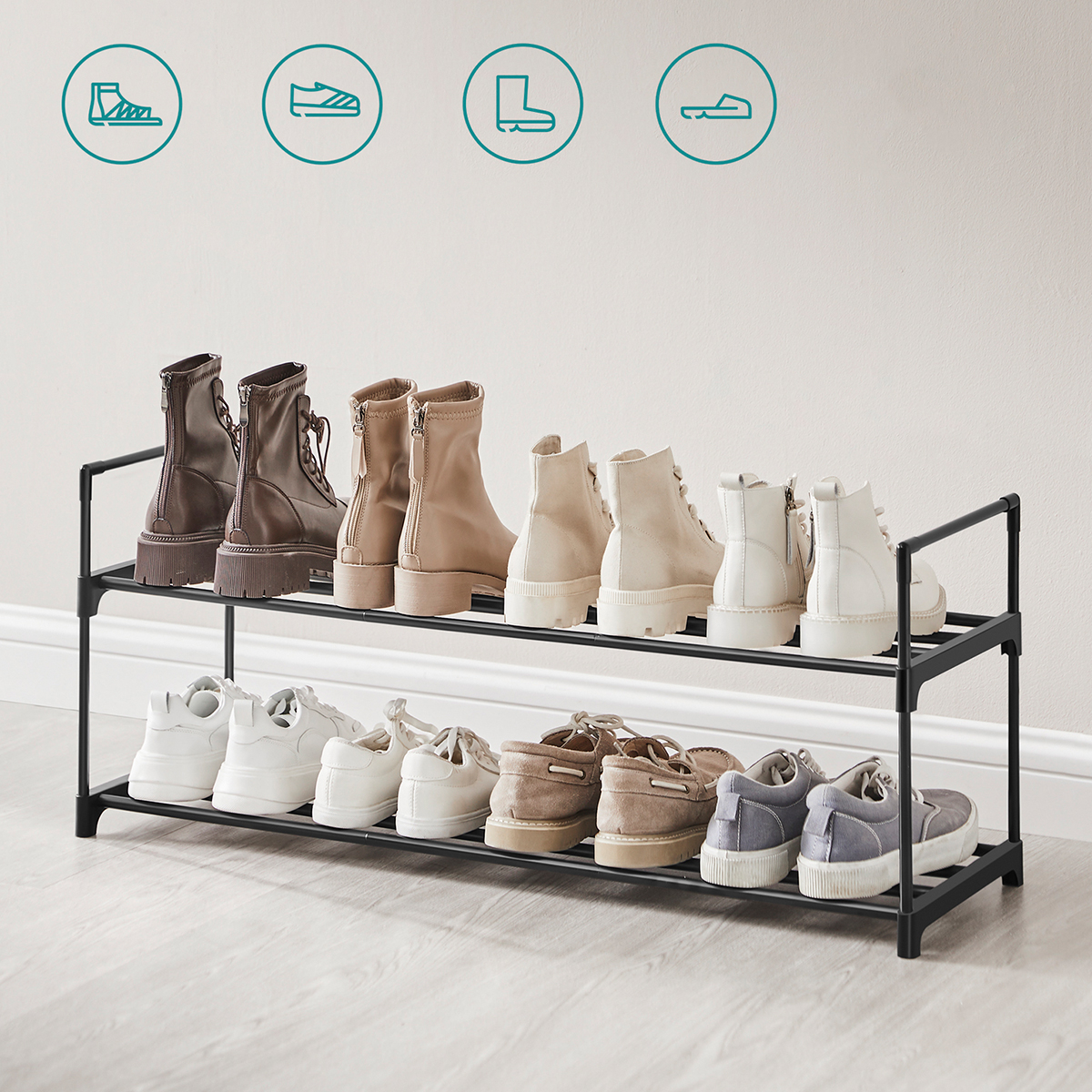 Παπουτσοθήκη 8 θέσεων από την εταιρεία Songmics. Είναι κατασκευασμένη από μεταλλικό υλικό σε μαύρο χρώμα. Αποτελείται από 2 ράφια που το καθένα δέχεται έως και 4 ζευγάρια παπούτσια. Ιδανικό έπιπλο για να έχετε πάντα τακτοποιημένα τα παπούτσια σας. Μέγιστο βάρος αντοχής ανά ράφι: 10kg. *Το προϊόν έρχεται αμοντάριστο και συναρμολογείται βάσει οδηγιών.*