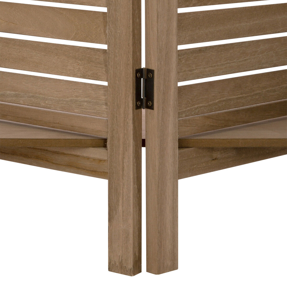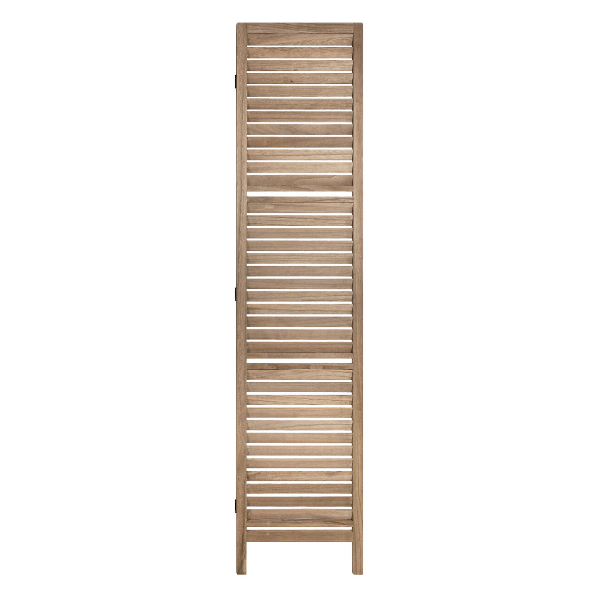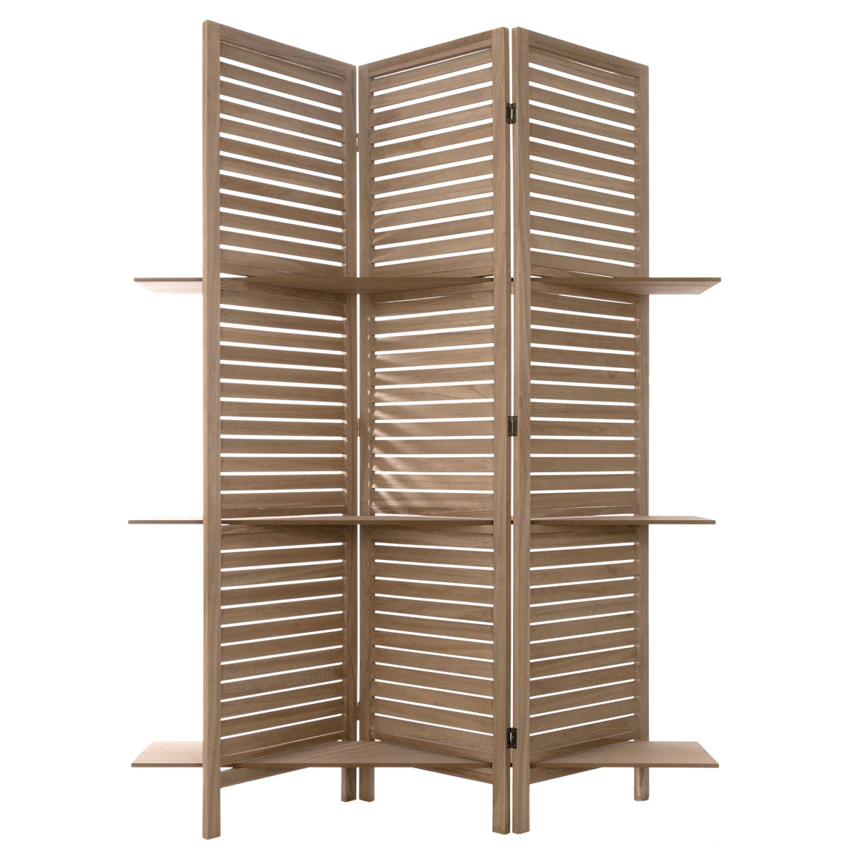 Παραβάν με ράφια για να διακοσμήσετε ή να διαχωρίσετε περιοχές στον χώρο σας. Είναι κατασκευασμένο από ξύλο MDF σε καφέ απόχρωση. Αποτελείται από 3 πάνελ με περσίδες και 3 ράφια που μπορείτε να τοποθετήσετε κορνίζες, βάζα, βιβλία ή άλλα μικροαντικείμενα. Επιτρέπει στο φως να περάσει ενώ παράλληλα διατηρεί την ιδιωτικότητα σας. Μπορείτε να ρυθμίσετε το μήκος του παραβάν και ταυτόχρονα τον χώρο των ραφιών του.