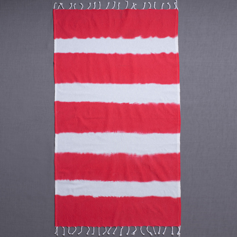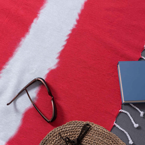 Παρεό θαλάσσης με ριγέ σχέδιο σε κόκκινο χρώμα και λευκές λεπτομέρειες της εταιρείας Silk Fashion. Διαθέτει κρόσια στο τελείωμα. Το ύφασμα είναι από 100% βαμβάκι που το καθιστά ιδιαίτερα ανάλαφρο, ανθεκτικό στη χρήση και στεγνώνει γρήγορα.