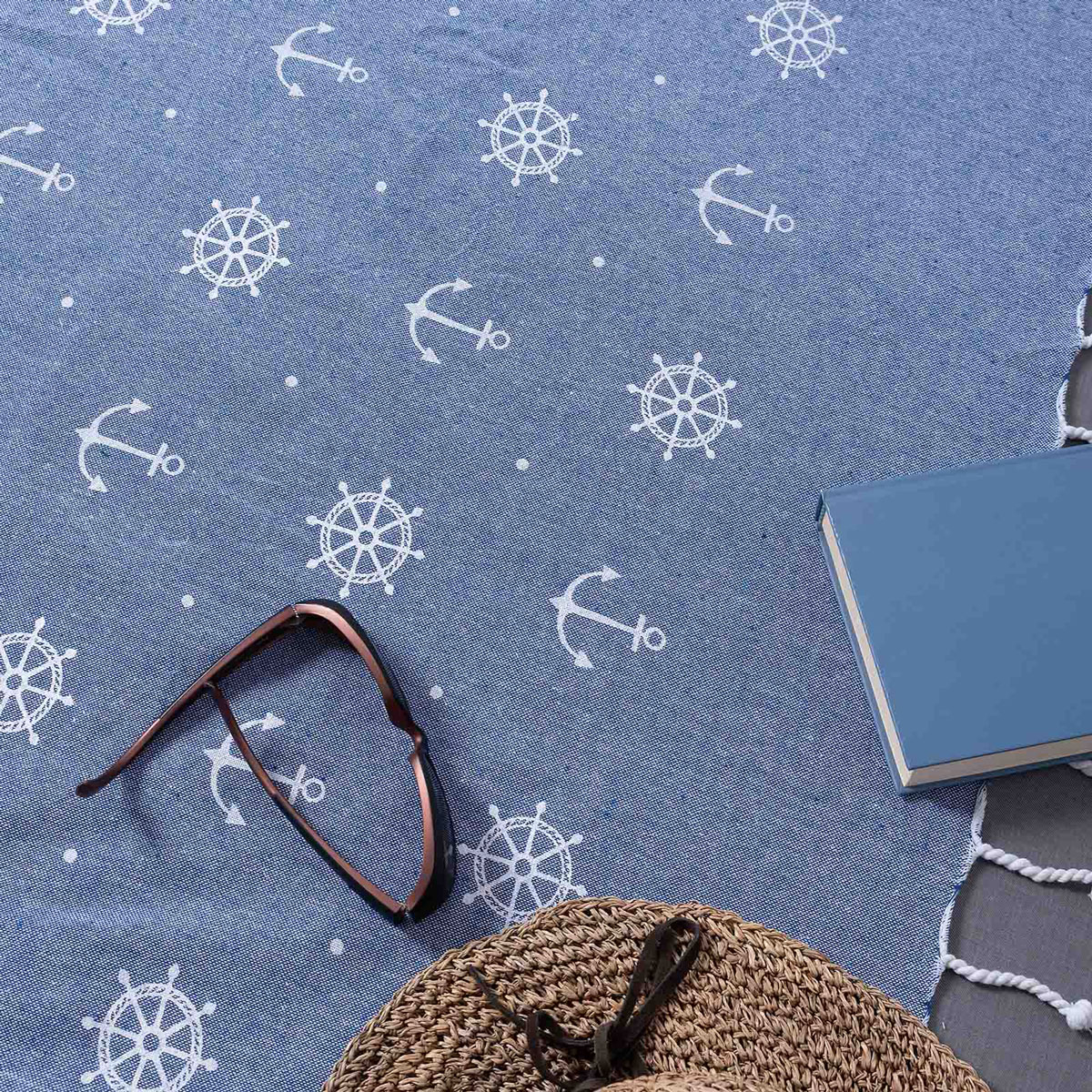 Παρεό θαλάσσης με μοντέρνο σχέδιο σε μπλε χρώμα και λευκές λεπτομέρειες της εταιρείας Silk Fashion. Διαθέτει κρόσια στο τελείωμα. Το ύφασμα είναι από 100% βαμβάκι που το καθιστά ιδιαίτερα ανάλαφρο, ανθεκτικό στη χρήση και στεγνώνει γρήγορα.