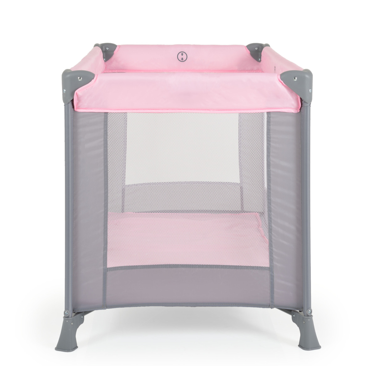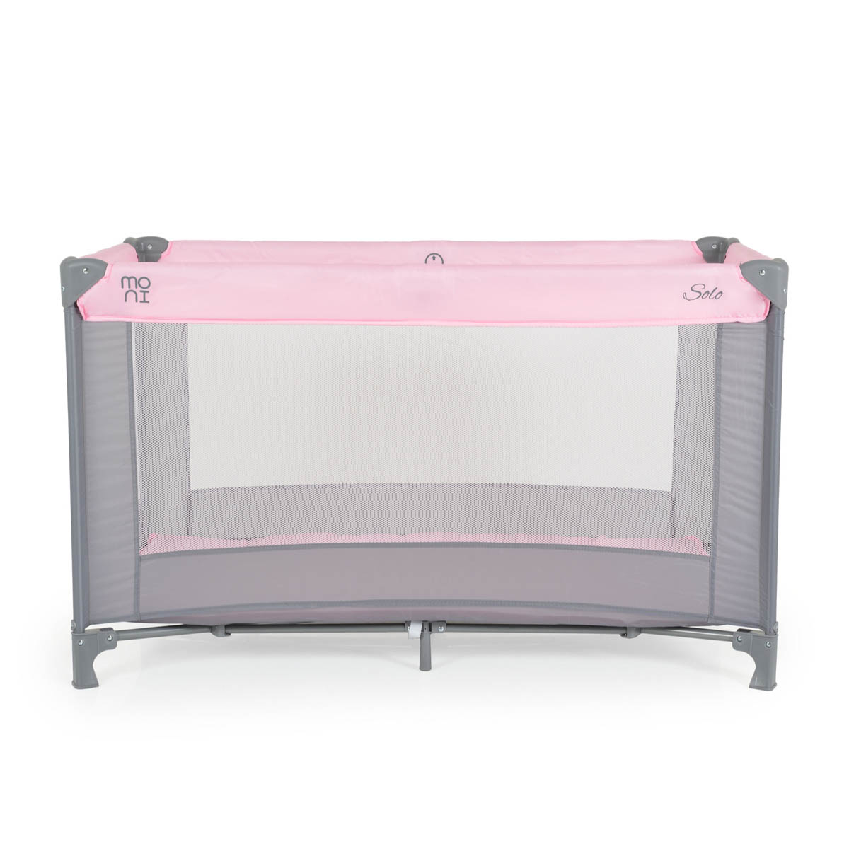 Παρκοκρέβατο Solo της εταιρείας Moni σε γκρι-ροζ χρώμα. Κατάλληλο την γέννηση και μέχρι 14 κιλά. Το παρκοκρέβατο αποτελεί τον αγαπημένο χώρο των παιδιών καθώς μπορούν να παίξουν με ασφάλεια, να αναπτύξουν διάφορες δεξιότητες ή να ξεκουραστούν. Απαιτείται μερική συναρμολόγηση.