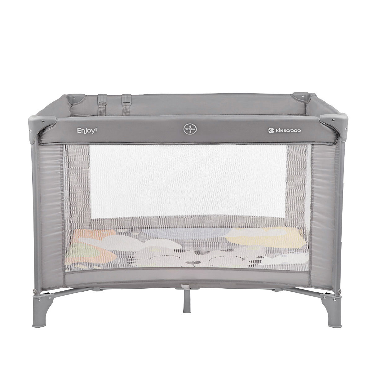 Παρκοκρέβατο Enjoy της εταιρείας Kikka Boo σε γκρι χρώμα. Κατάλληλο από 6 έως 36 μηνών και μέχρι 15 κιλά. Το παρκοκρέβατο αποτελεί τον αγαπημένο χώρο των παιδιών καθώς μπορούν να παίξουν με ασφάλεια, να αναπτύξουν διάφορες δεξιότητες ή να ξεκουραστούν. Απαιτείται μερική συναρμολόγηση.
