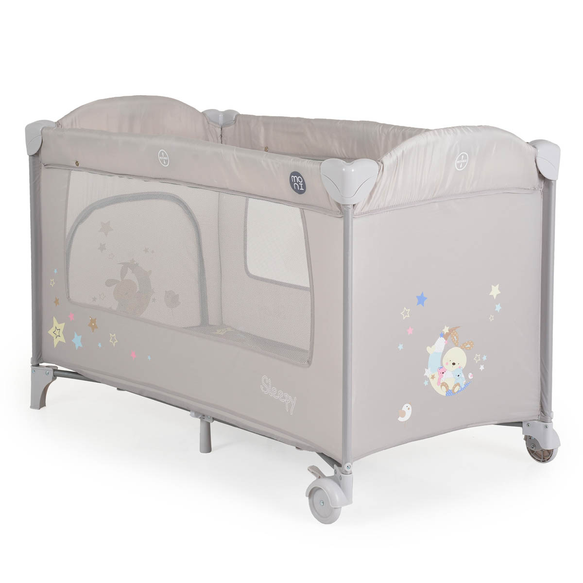 Παρκοκρέβατο Sleepy της εταιρείας Moni σε γκρι αποχρώσεις. Κατάλληλο την γέννηση και μέχρι 15 κιλά. Ιδανικό για να έχει το παιδί τον δικό του χώρο για να ξεκουραστεί ή να παίξει, όπου κι αν βρίσκεστε. Απαιτείται μερική συναρμολόγηση.