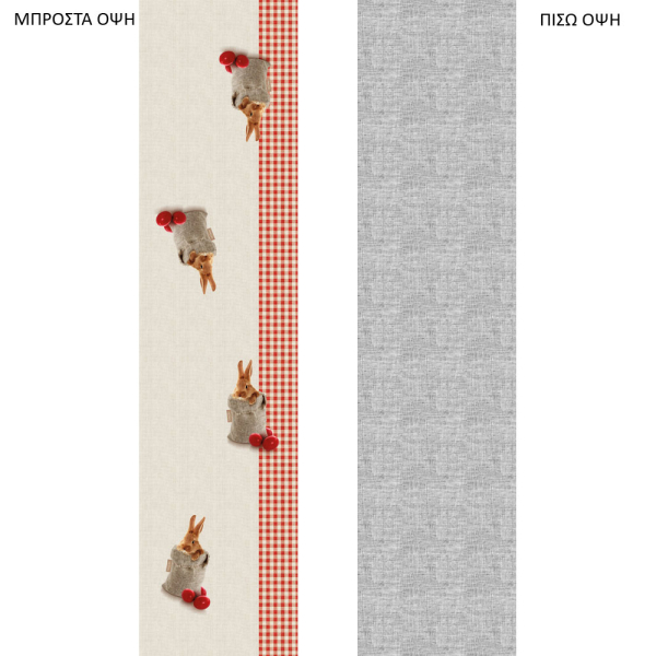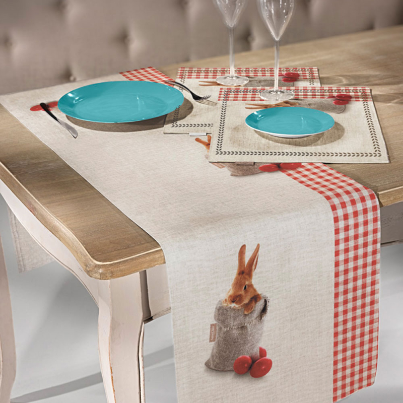 Runner από την εταιρεία Saint Clair, σε εκρού χρώμα με κόκκινες λεπτομέρειες και καρό σχέδιο. Το ύφασμα είναι 100% polyester που το καθιστά ιδανική για καθημερινή χρήση. Η πίσω όψη έχει γκρι απόχρωση. Συνδυάστε το με τα υπόλοιπα είδη του ίδιου σχεδίου για μια ολοκληρωμένη πασχαλινή διακόσμηση.
