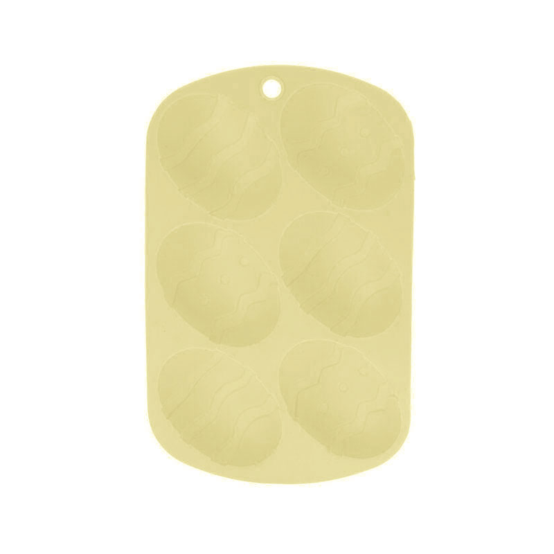 Φόρμα ζαχαροπλαστικής 6 θέσεων για Cupcakes & Muffins σε σχήμα πασχαλινού αυγού. Είναι αντικολλητική, κατασκευασμένη από σιλικόνη κατάλληλγ για τρόφιμα. Ιδανική για να δώσετε σχήμα στα κέικ σας τις πασχαλινές ημέρες ή όποτε άλλοτε επιθυμείτε.