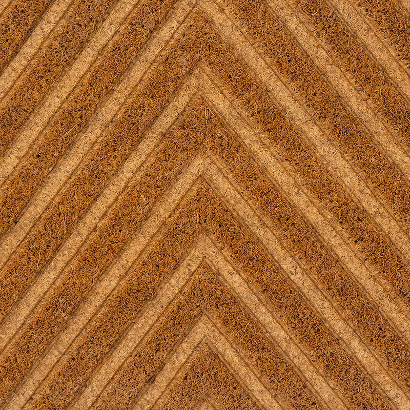 Πατάκι εισόδου κατασκευασμένο από 100% κοκοφοίνικα σε μπεζ χρώμα, ανάγλυφο σχέδιο και αντιολισθητικό υπόστρωμα. Ιδανικό για χρήση στην είσοδο του σπιτιού ή σε κάποια μπαλκονόπορτα.