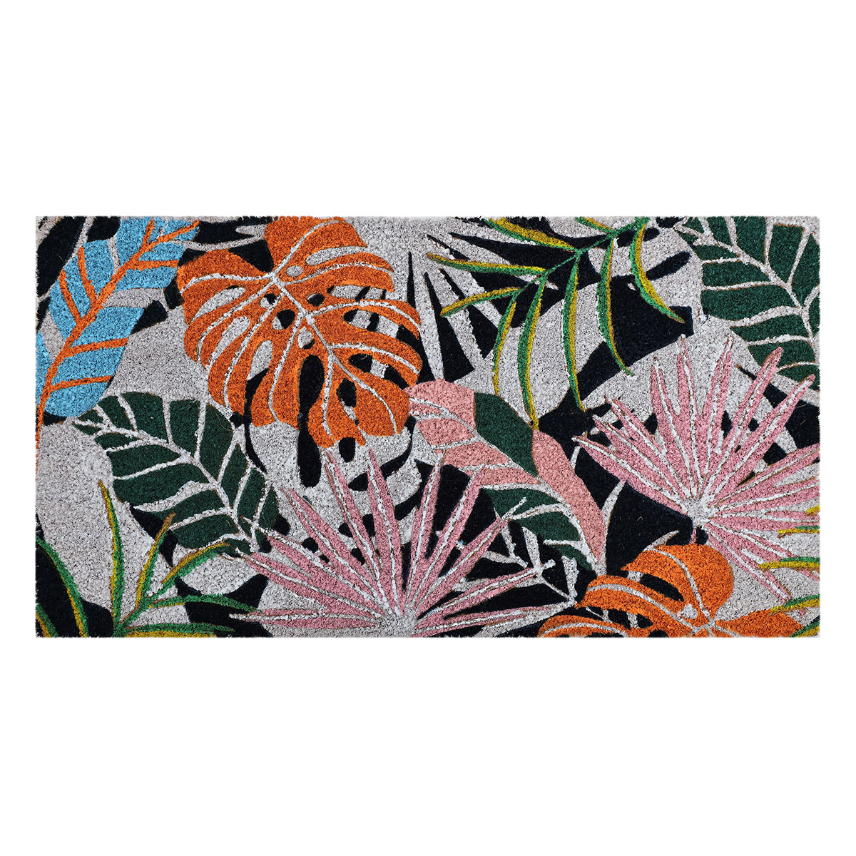 Πατάκι εισόδου από την εταιρεία Velcoc με πολύχρωμο τρόπικαλ σχέδιο. Είναι κατασκευασμένο από κοκοφοίνικα. Διαθέτει αντιολισθητικό υπόστρωμα από latex. Οι πυκνές ίνες του συγκρατούν σκόνη, λάσπη και βρωμιά. Ιδανικό για χρήση στην είσοδο του σπιτιού ή σε κάποια μπαλκονόπορτα. Πάχος 1.4εκ.