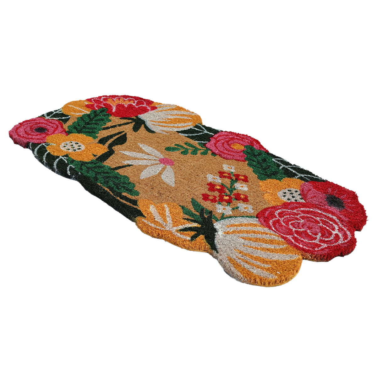 Πατάκι εισόδου από την εταιρεία Velcoc με πολύχρωμο φλοράλ σχέδιο. Είναι κατασκευασμένο από κοκοφοίνικα. Έχει χρησιμοποιηθεί ακρυλική βαφή. Διαθέτει αντιολισθητικό υπόστρωμα από βινυλίου. Οι πυκνές ίνες του συγκρατούν σκόνη, λάσπη και βρωμιά. Ιδανικό για χρήση στην είσοδο του σπιτιού ή σε κάποια μπαλκονόπορτα. Πάχος 1.4εκ.