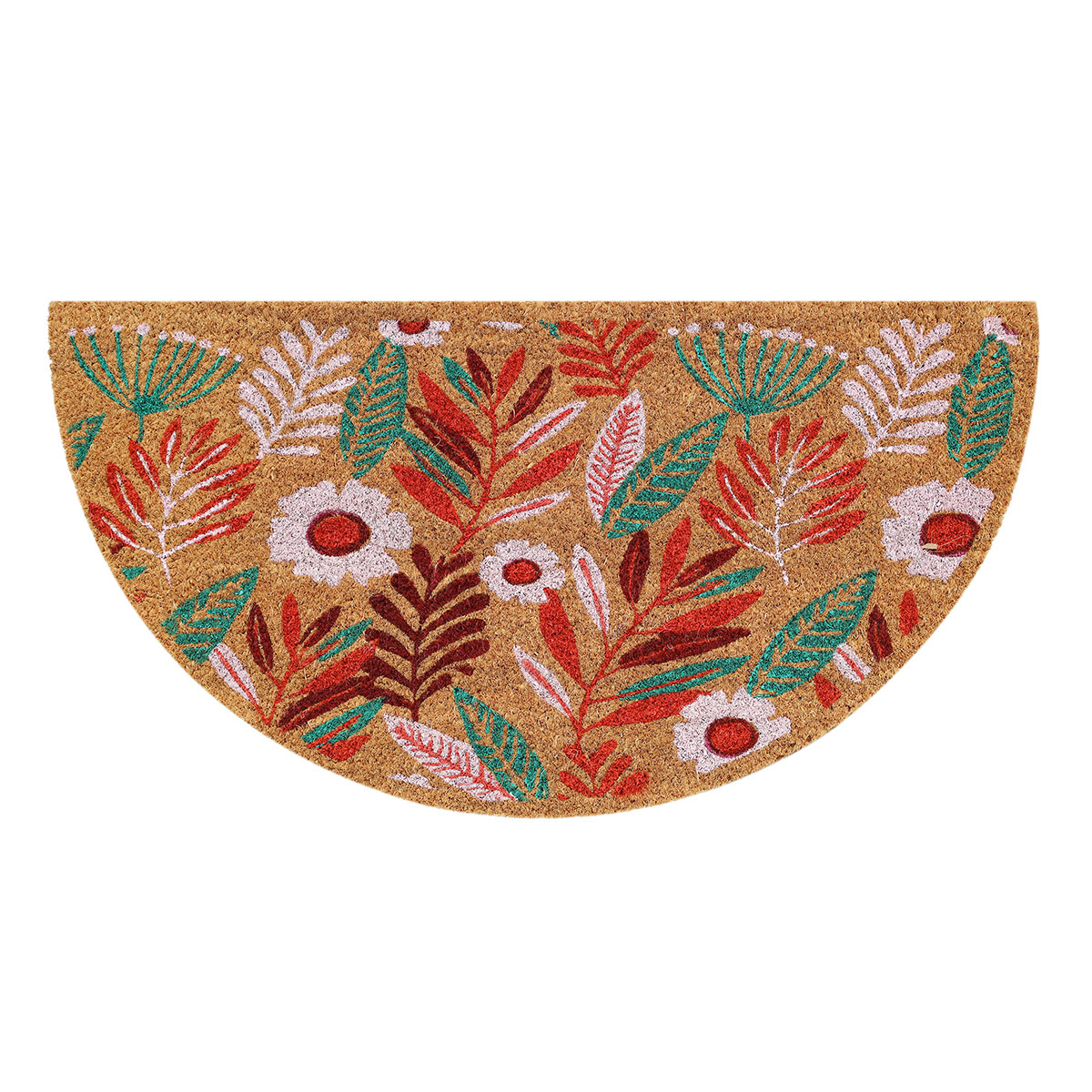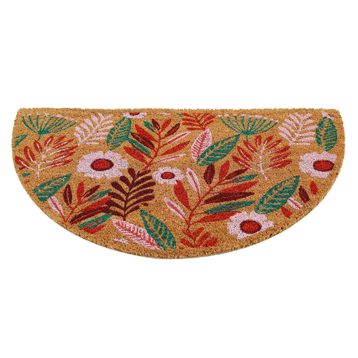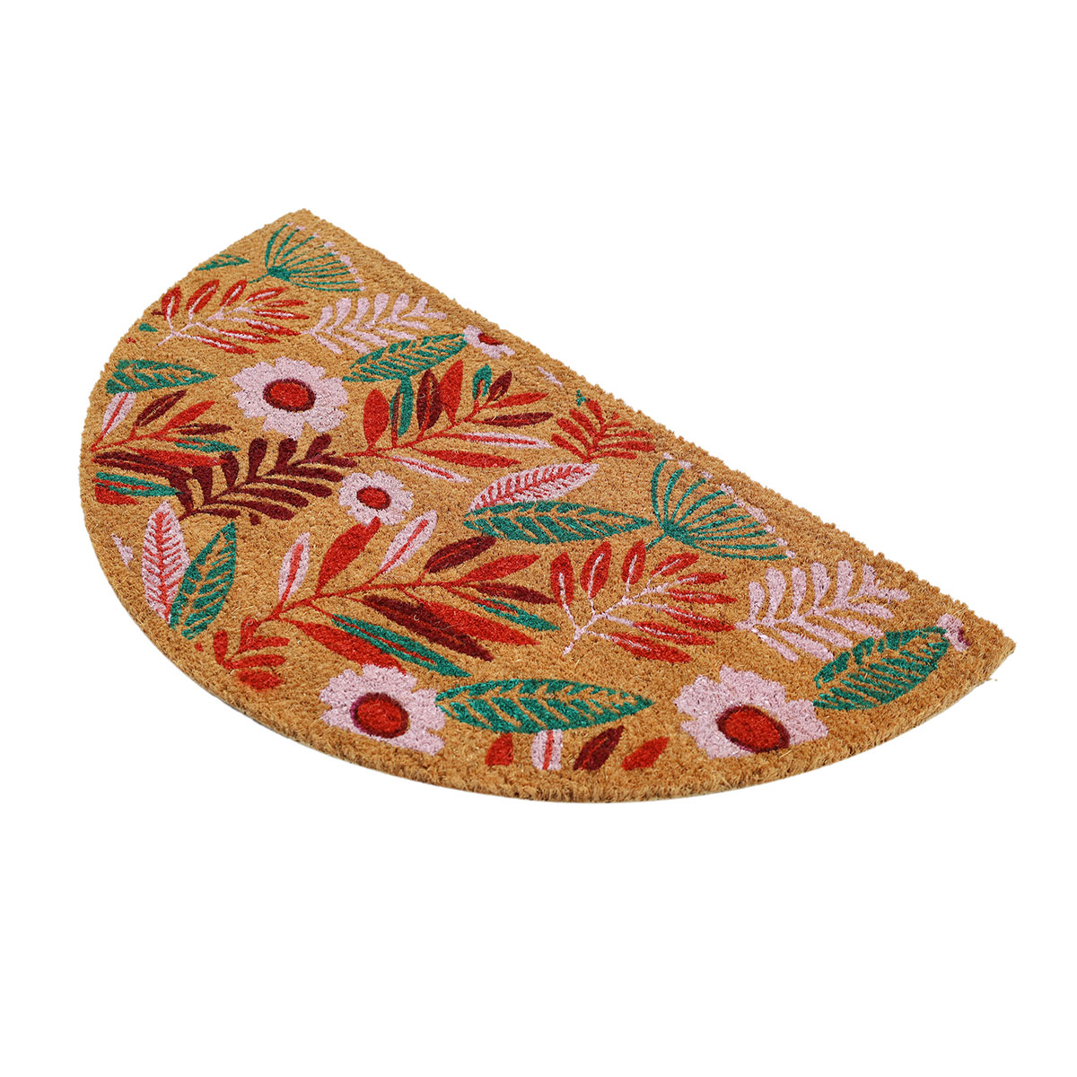Πατάκι εισόδου ημικυκλικό από την εταιρεία Velcoc με πολύχρωμο φλοράλ σχέδιο. Είναι κατασκευασμένο από κοκοφοίνικα. Έχει χρησιμοποιηθεί ακρυλική βαφή. Διαθέτει αντιολισθητικό υπόστρωμα από βινυλίου. Οι πυκνές ίνες του συγκρατούν σκόνη, λάσπη και βρωμιά. Ιδανικό για χρήση στην είσοδο του σπιτιού ή σε κάποια μπαλκονόπορτα. Πάχος 1.4εκ.