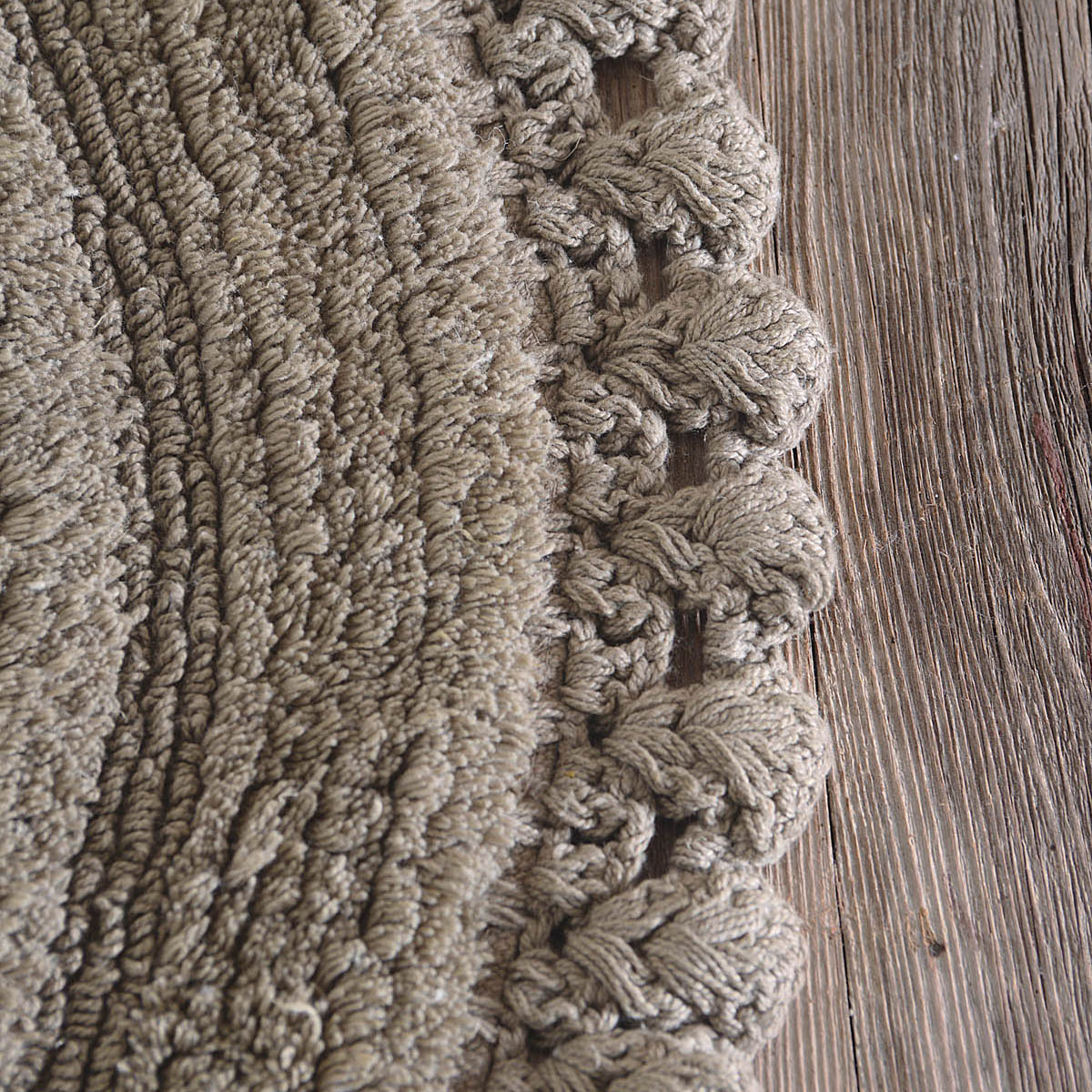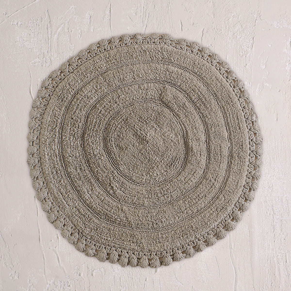 Στρογγυλό πατάκι μπάνιου από την εταιρεία Rythnmos σε μπεζ-γκρι χρώμα με ανάγλυφο σχέδιο και πλεκτή φάσα περιμετρικά. Κατασκευασμένο από 100% βαμβάκι που το καθιστά ανθεκτικό και μαλακό. Ιδανικό για να προστατεύσει το μπάνιο σας από τυχόν νερά.