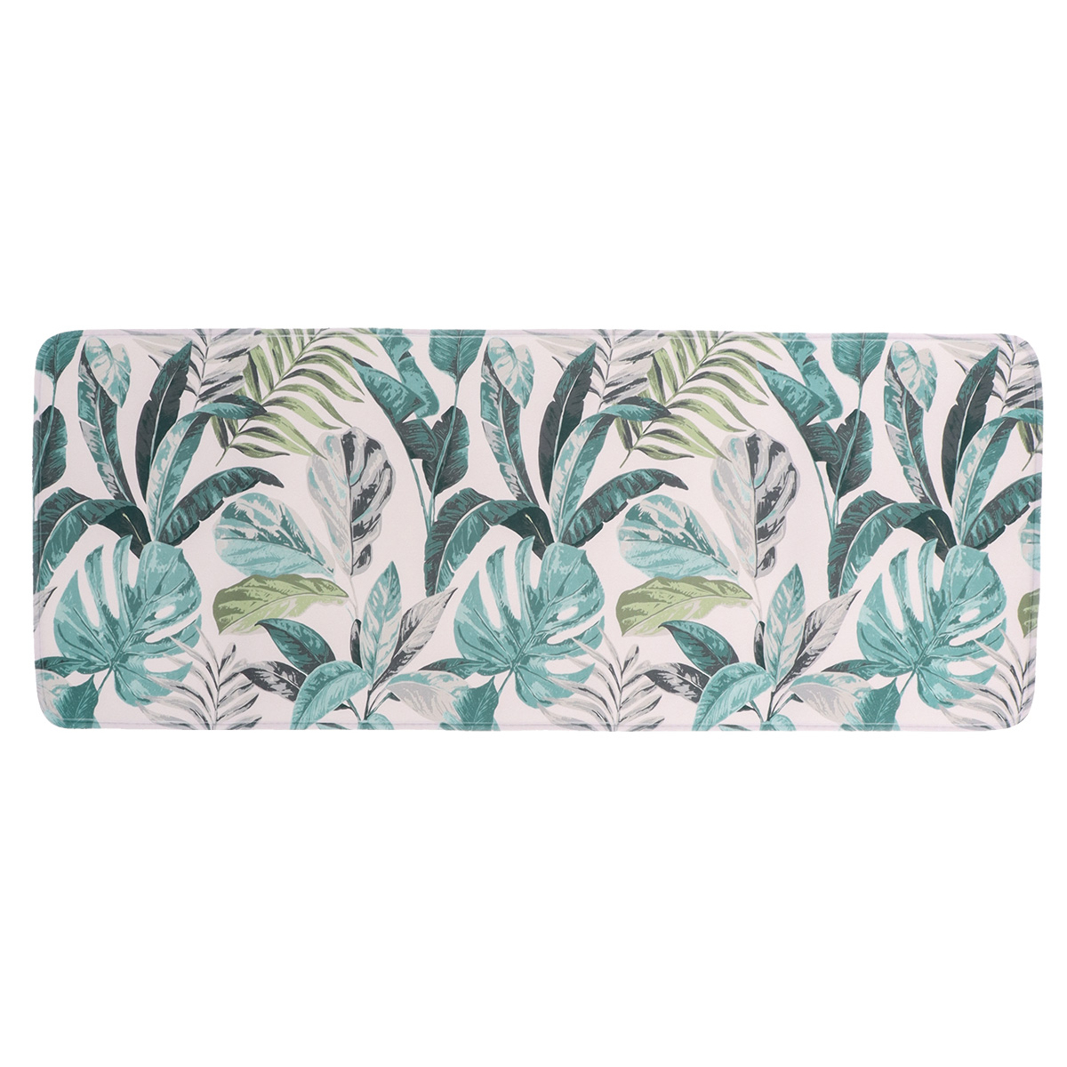 Απορροφητικό πατάκι μπάνιου με μικροΐνες 45x120 με γκρι, λαχανί και βεραμάν tropical σχέδιο σε λευκό φόντο. Η πάνω πλευρά του είναι από 100% microfiber που κάνει το πατάκι απαλό και απορροφητικό ενώ η κάτω πλευρά έχει αντιολισθητική επένδυση για να μένει σταθερό. Σας προσφέρει ένα ζεστό πάτημα βγαίνοντας από το ντους. Συνδυάστε το με τα υπόλοιπα είδη της ίδιας σειράς για ένα ολοκληρωμένο αποτέλεσμα στο μπάνιο σας.