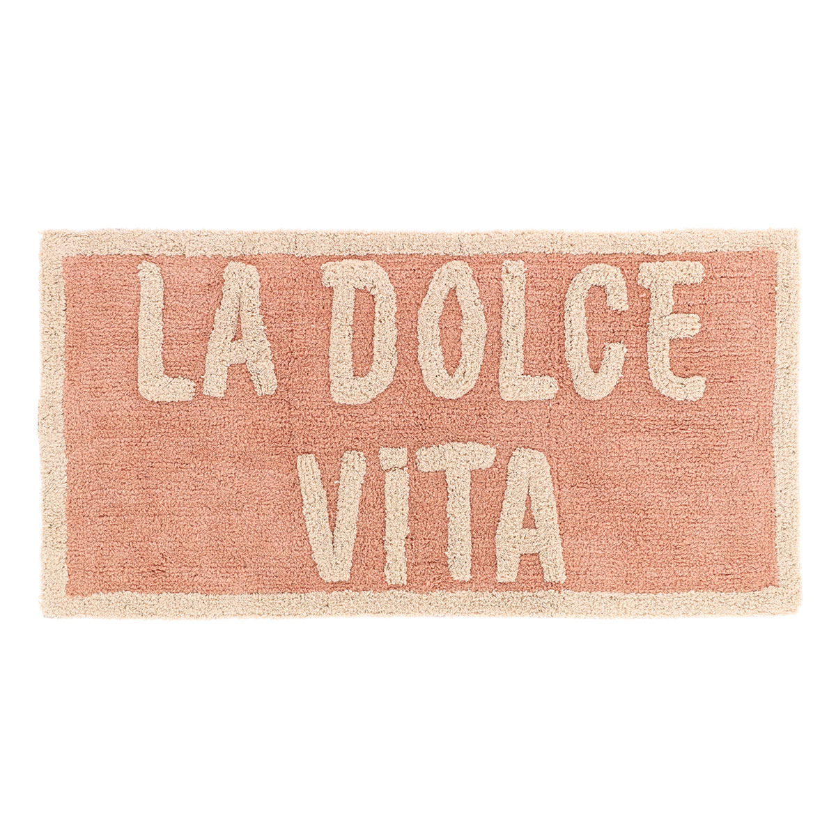 Πατάκι μπάνιου 45x90 με μοντέρνο σχέδιο σε ροζ χρώμα, με μπεζ λεπτομέρειες. Έχει ορθογώνιο σχήμα και είναι κατασκευασμένο από 90% βαμβάκι και 10% άλλα νήματα. Έχει απαλή υφή και ζεστό πάτημα.