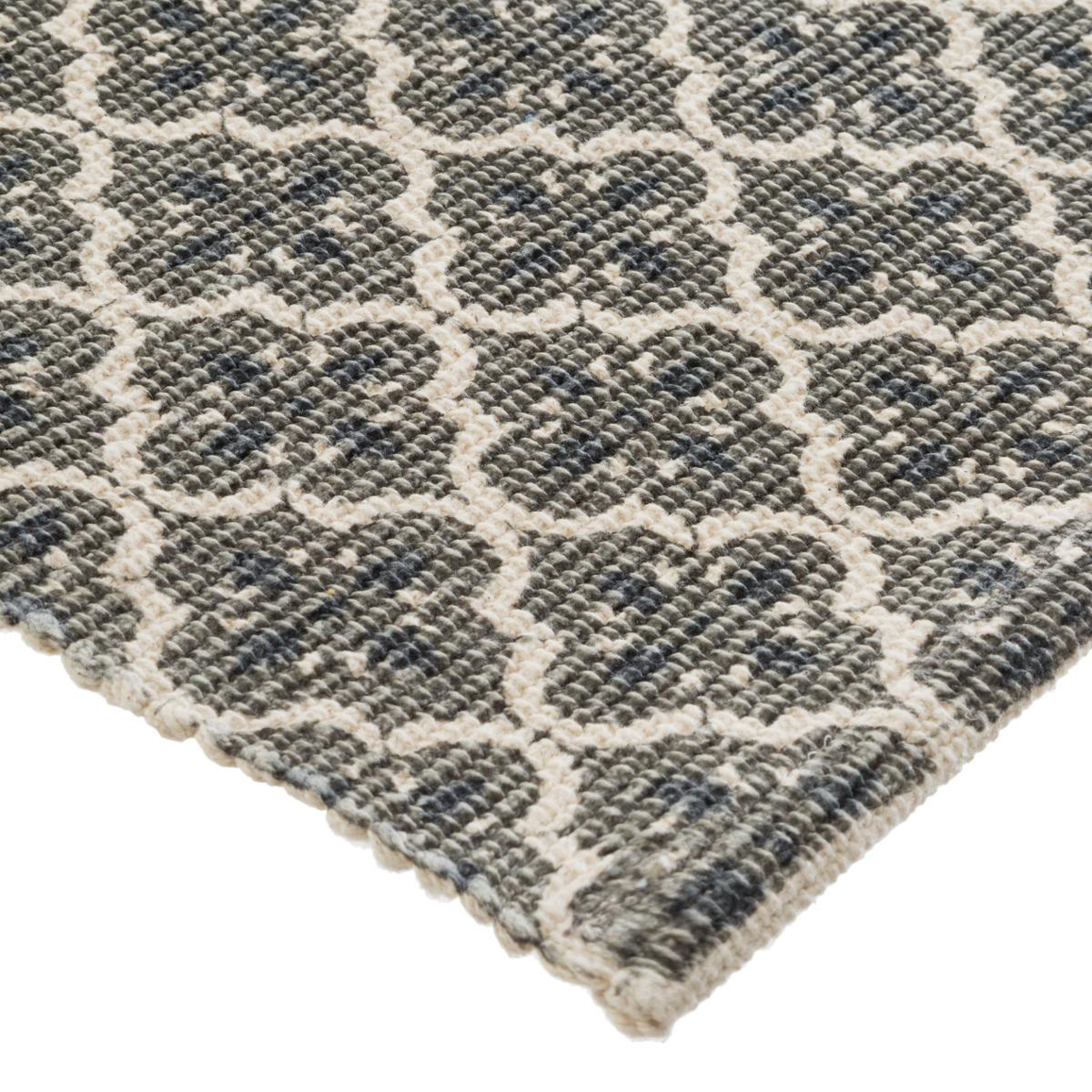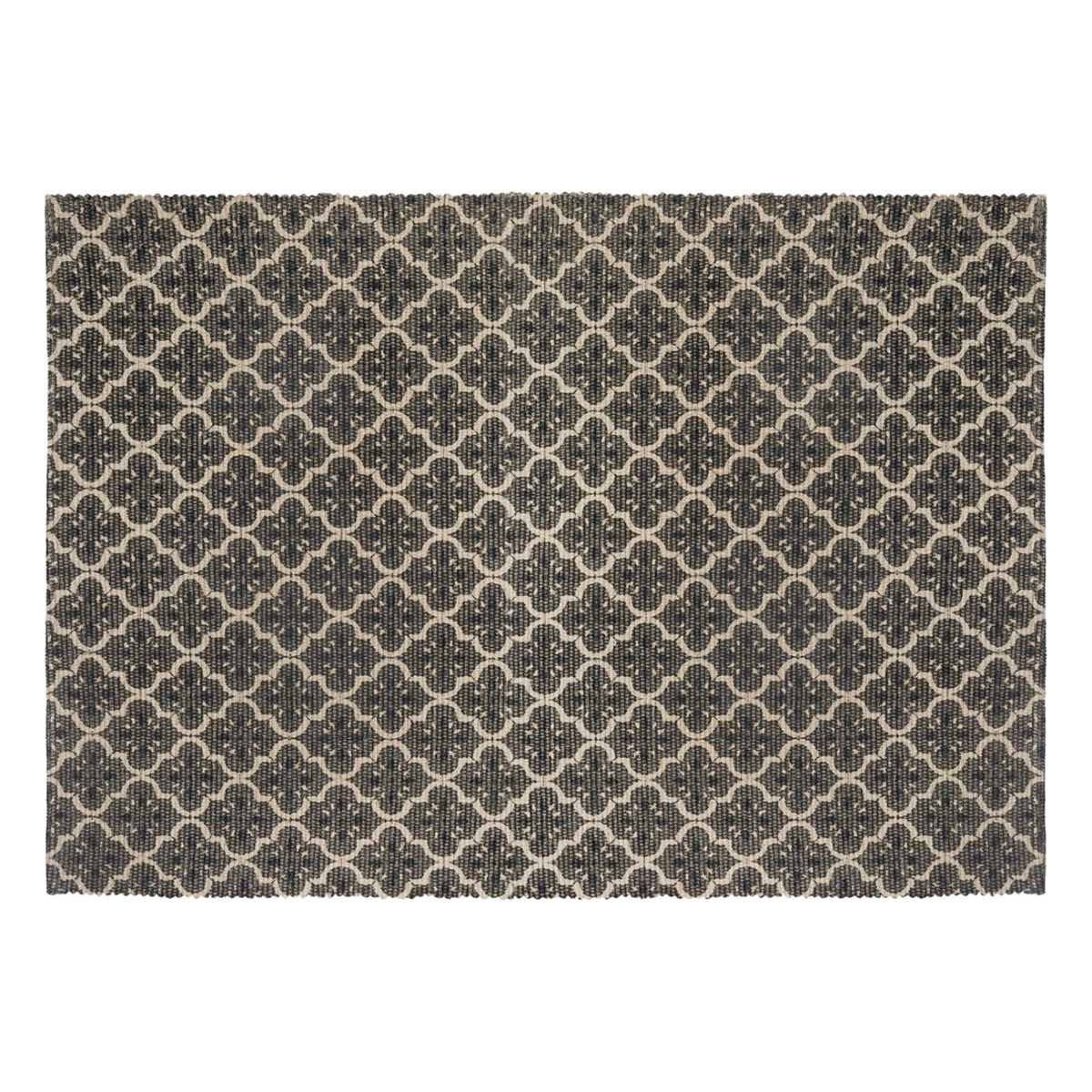 Υφασμάτινο πατάκι κατασκευασμένο από βαμβακερό νήμα. Έχει μπεζ χρώμα με μαύρο μοντέρνο σχέδιο. Ιδανικό για να τοποθετηθεί και να διακοσμήσει μοναδικά το χωλ, την κρεβατοκάμαρα, και όποιον άλλο χώρο επιθυμείτε.