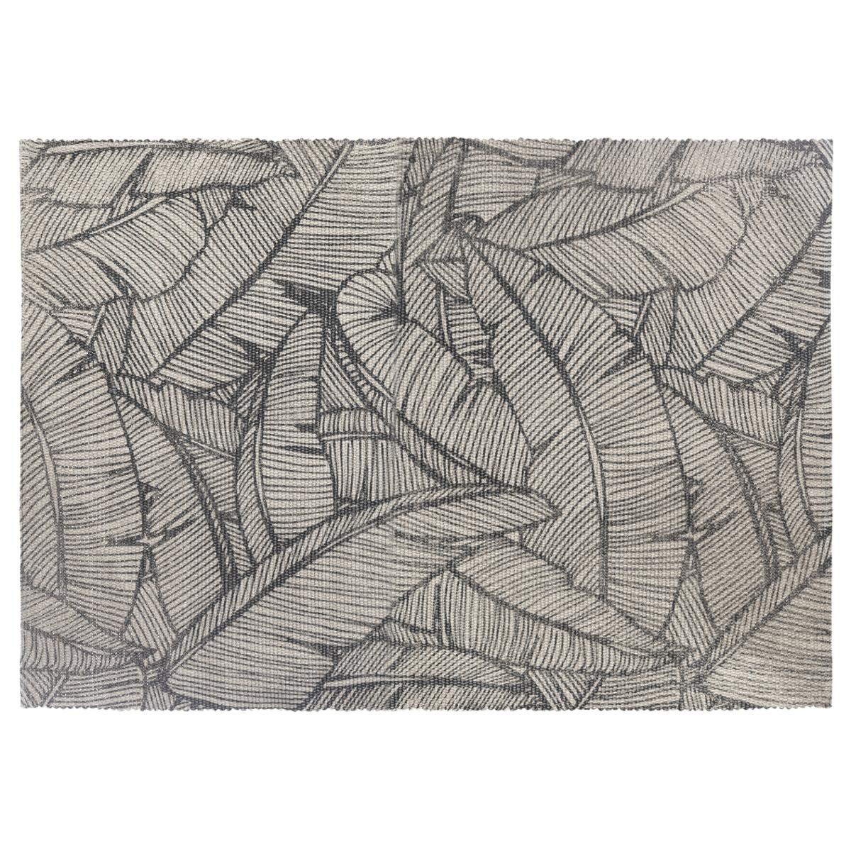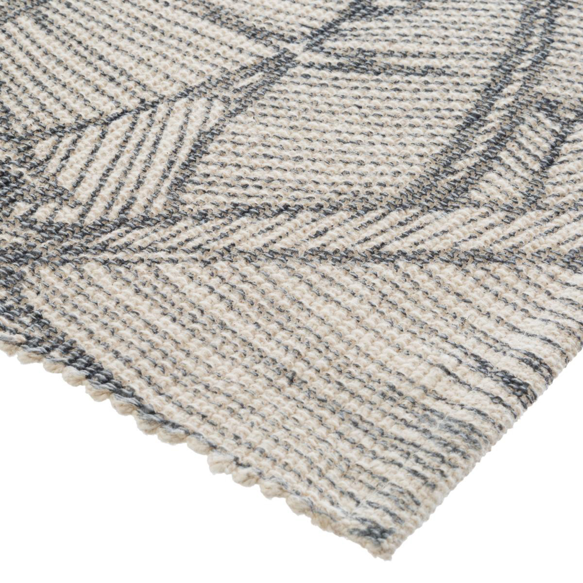 Υφασμάτινο πατάκι κατασκευασμένο από βαμβακερό νήμα. Έχει μπεζ χρώμα με μαύρο τροπικό σχέδιο. Ιδανικό για να τοποθετηθεί και να διακοσμήσει μοναδικά το χωλ, την κρεβατοκάμαρα, και όποιον άλλο χώρο επιθυμείτε.