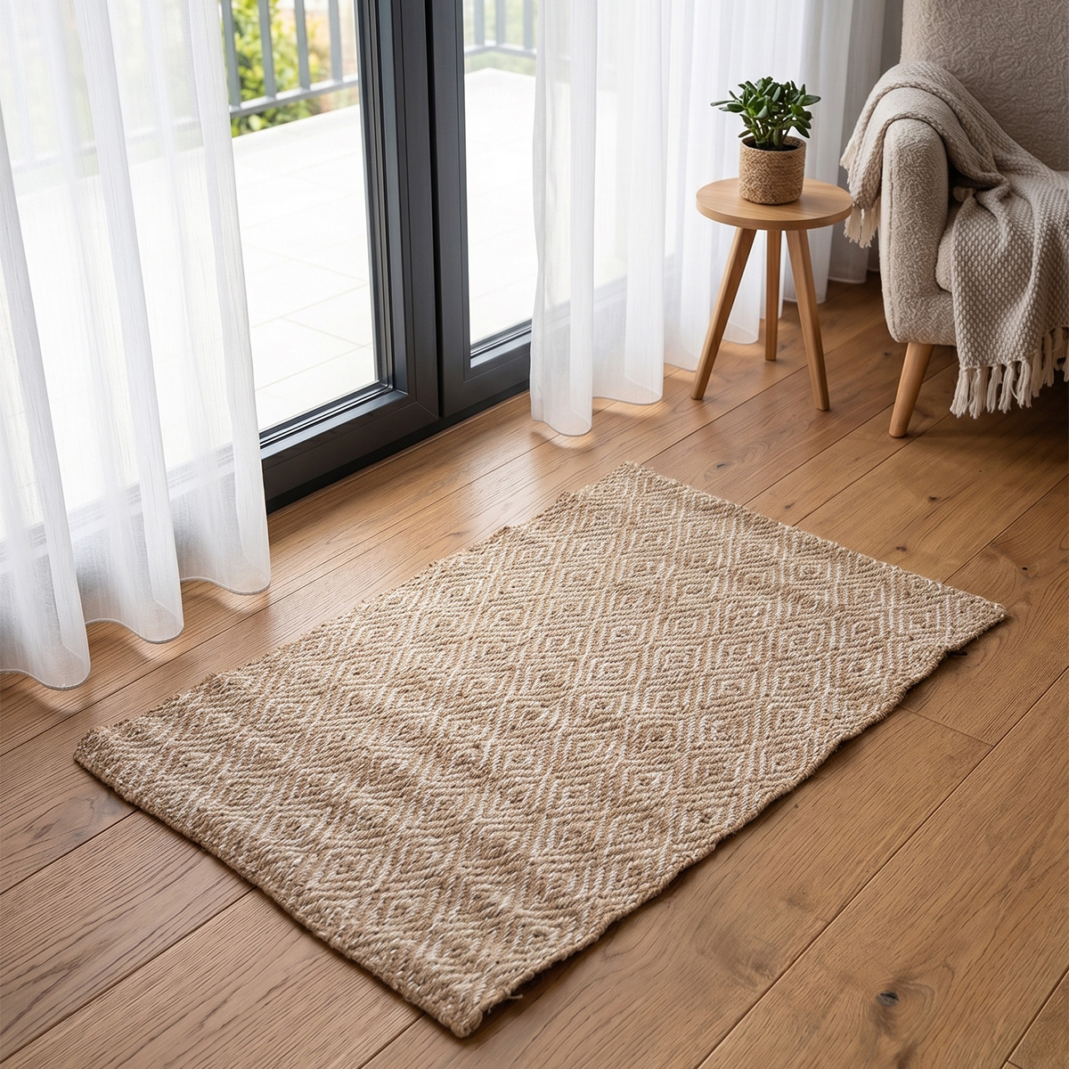 Πατάκι 60x90 από την σειρά Terra της εταιρείας Ravelia με γεωμετρικό σχέδιο. Είναι κατασκευασμένο από φυσική γιούτα και βαμβάκι σε μπεζ χρώμα. Το βάρος του είναι 2000gsm. Η ψάθινη υφή και η σύνθεσή του το καθιστούν ιδανικό για χρήση όλο τον χρόνο. Ιδανικό για να ταιριάξει σε οποιονδήποτε χώρο του σπιτιού σας. Συνδυάστε το με τα χαλιά της ίδιας σειράς στις υπόλοιπες διαστάσεις για ένα αρμονικό και ολοκληρωμένο αποτέλεσμα.