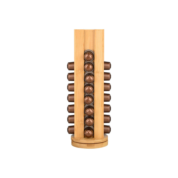 Ξύλινη περιστρεφόμενη βάση για κάψουλες espresso, με πρωτοποριακό design που θα κρατήσει οργανωμένο τον πάγκο σας από την εταιρεία εstia. Είναι κατασκευασμένη από ξύλο bamboo σε φυσική απόχρωση. Μπορεί να δεχτεί μέγιστο 36 κάψουλες καφέ.