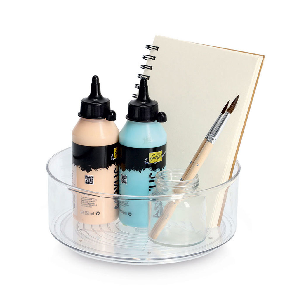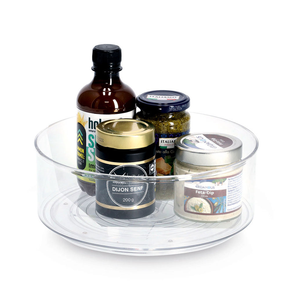 Περιστρεφόμενη βάση οργάνωσης για να έχετε πάντα τακτοποιημένα τα πράγματα σας. Είναι κατασκευασμένη από διάφανο πλαστικό υλικό. Μπορεί να χρησιμοποιηθεί στη κουζίνα για τα βαζάκια των μπαχαρικών, στο δωμάτιο ή το μπάνιο για τα καλλυντικά και τις κρέμες σας ή ακόμα και στο γραφείο για να το οργανώσετε. Συνδυάστε το με τα υπόλοιπα είδη του ίδιου σετ για ένα ολοκληρωμένο αποτέλεσμα στο χώρο σας.