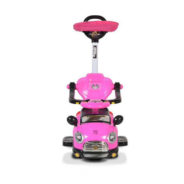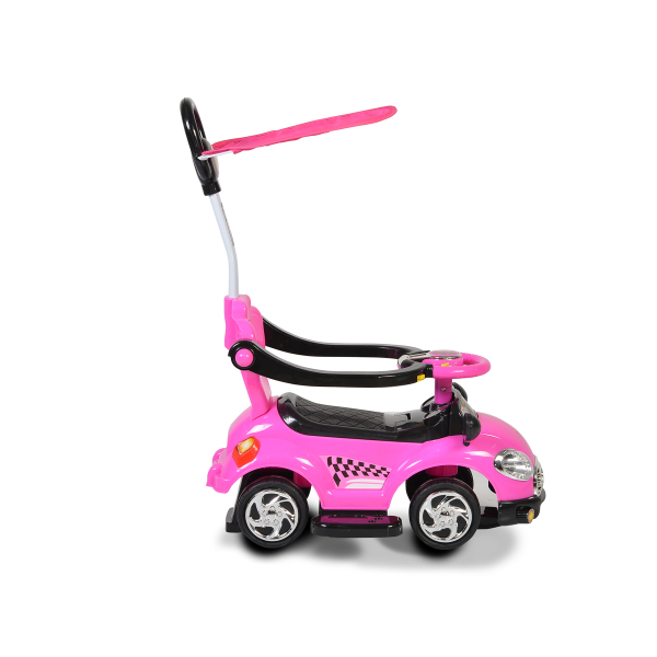 Περπατούρα αυτοκινητάκι σε ροζ χρώμα από την εταιρεία Moni. Το τιμόνι έχει κουμπάκια που πιέζοντάς τα παράγουν μουσική. Διαθέτει λαβή γονέα για να το καθοδηγείτε και να το κρατάτε κοντά σας. Το καθισματάκι του έχει περιμετρικά μπάρα ασφαλείας που αποτρέπει τυχόν πτώσεις και υποπόδια για να ακουμπάει τα ποδαράκια του το παιδί όταν το κινείτε εσείς. Είναι εξοπλισμένο με ηλιοπροστασία που αποτρέπει τυχόν εγκαύματα από την έκθεση στον ήλιο. Η μουσική λειτουργεί με 2 μπαταρίες ΑΑ (δεν περιλαμβάνονται). Κατάλληλο για ηλικίες 3 έως 5 ετών και μέγιστο βάρος 20kg.