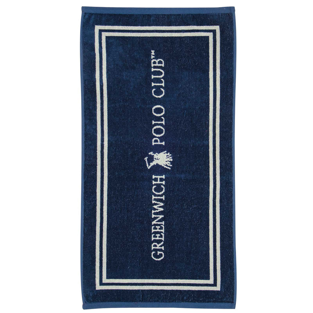 Πετσέτα γυμναστηρίου σε μπλε χρώμα, με λευκές λεπτομέρειες και επιγραφή στην επιφάνεια από τον οίκο Greenwich Polo Club. Κατασκευασμένη από βελουτέ ύφασμα 100% βαμβάκι βάρους 400gsm, που την κάνει ιδιαίτερα απαλή, απορροφητική και ανθεκτική στη χρήση.