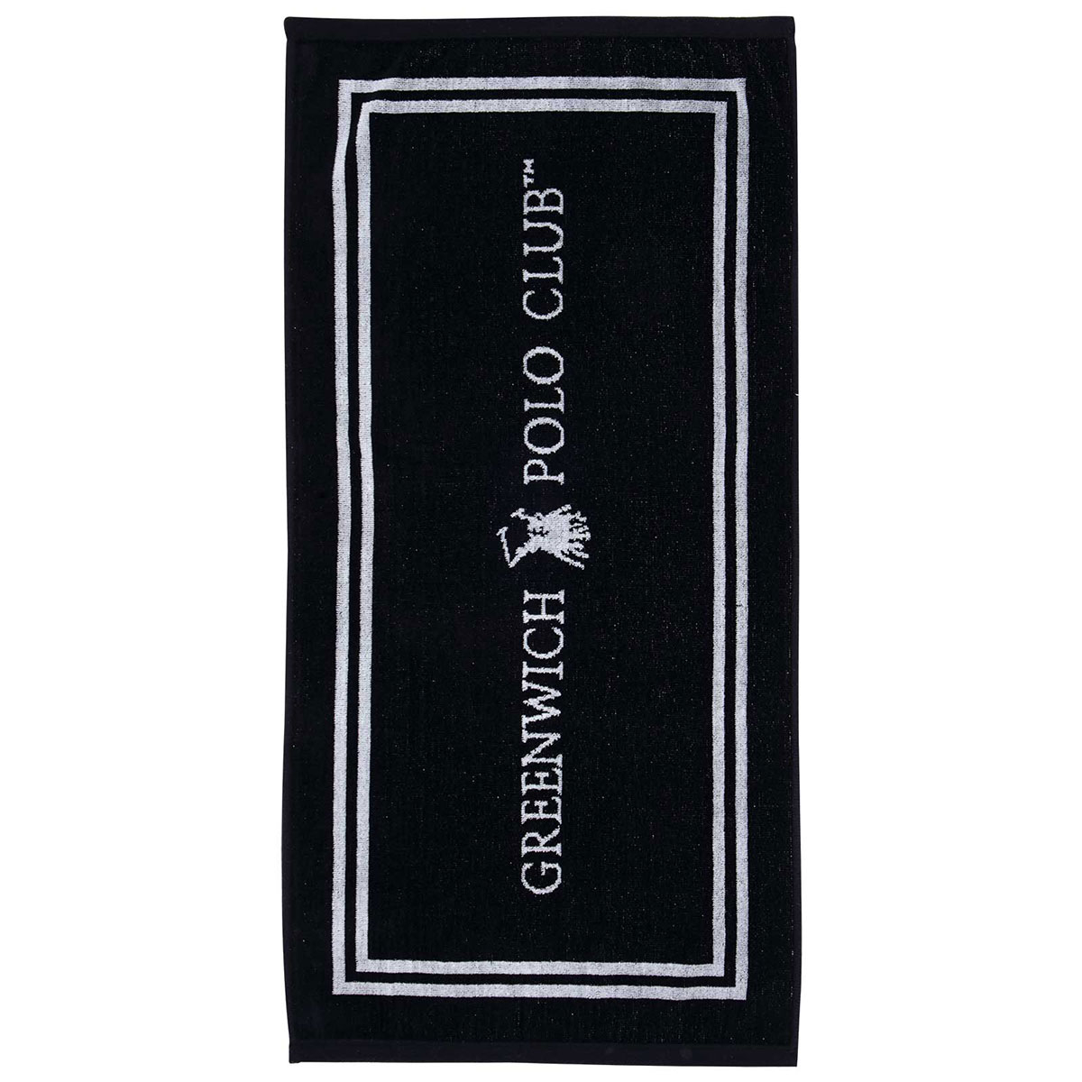Πετσέτα γυμναστηρίου σε μαύρο χρώμα, με γκρι λεπτομέρειες και επιγραφή στην επιφάνεια από τον οίκο Greenwich Polo Club. Κατασκευασμένη από βελουτέ ύφασμα 100% βαμβάκι βάρους 400gsm, που την κάνει ιδιαίτερα απαλή, απορροφητική και ανθεκτική στη χρήση.