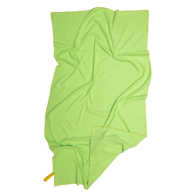 Πετσέτα θαλάσσης σε λαχανί χρώμα από την εταιρεία Viopros. Είναι κατασκευασμένη από 100% microfiber που την καθιστά πολύ ελαφριά και υπερ-απορροφητική. Είναι ιδανική για χρήση στην παραλία καθώς στεγνώνει γρήγορα και δεν κολλάει η άμμος πάνω της. Διαθέτει λάστιχο για να μένει διπλωμένη.