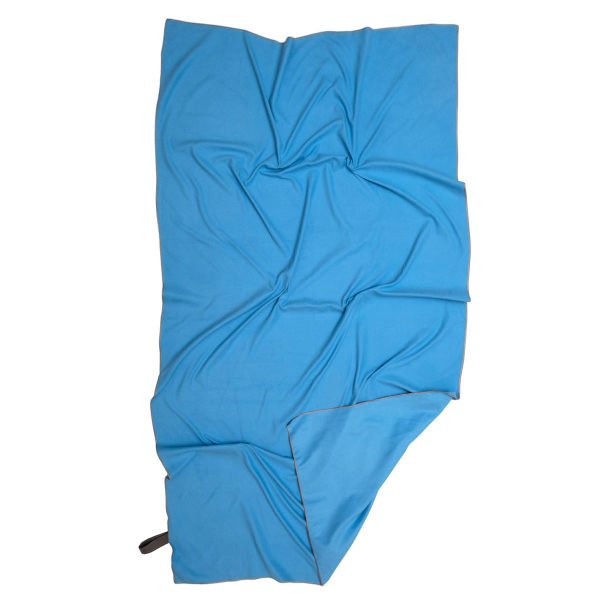 Πετσέτα θαλάσσης σε γαλάζιο χρώμα από την εταιρεία Viopros. Είναι κατασκευασμένη από 100% microfiber που την καθιστά πολύ ελαφριά και υπερ-απορροφητική. Είναι ιδανική για χρήση στην παραλία καθώς στεγνώνει γρήγορα και δεν κολλάει η άμμος πάνω της. Διαθέτει λάστιχο για να μένει διπλωμένη.