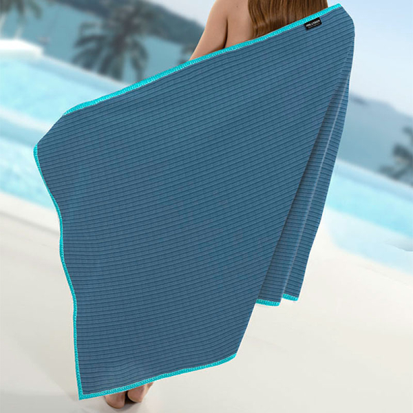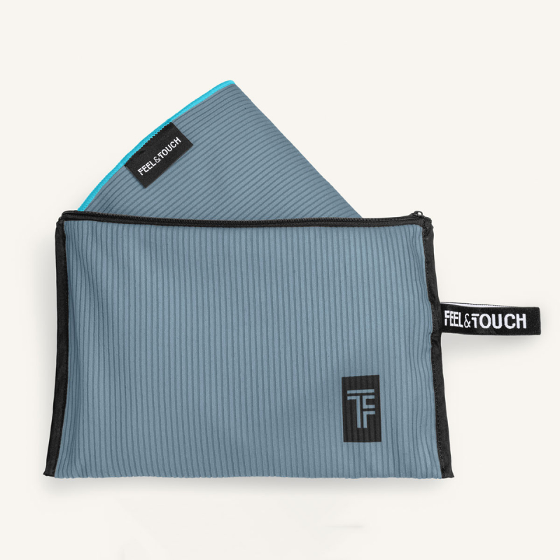 Πετσέτα θαλάσσης σε σκούρο γκρι χρώμα από την εταιρεία Feel & Touch. Είναι κατασκευασμένη από 90% polyester-10% πολυαμίδιο με περιμετρικό ρέλι. Στεγνώνει γρήγορα, δεν κολλάει η άμμος πάνω της ενώ καταλαμβάνει μικρό χώρο διπλωμένη για να την μεταφέρετε εύκολα. Το νεσεσέρ είναι ιδανικό για τα καλλυντικά, την πετσέτα ή τα προσωπικά σας αντικείμενα ενώ έχει αδιάβροχη επένδυση, φερμουάρ για να κλείνει και χειρολαβή. Ιδανικό σετ για το μπάνιο σας στην παραλία.