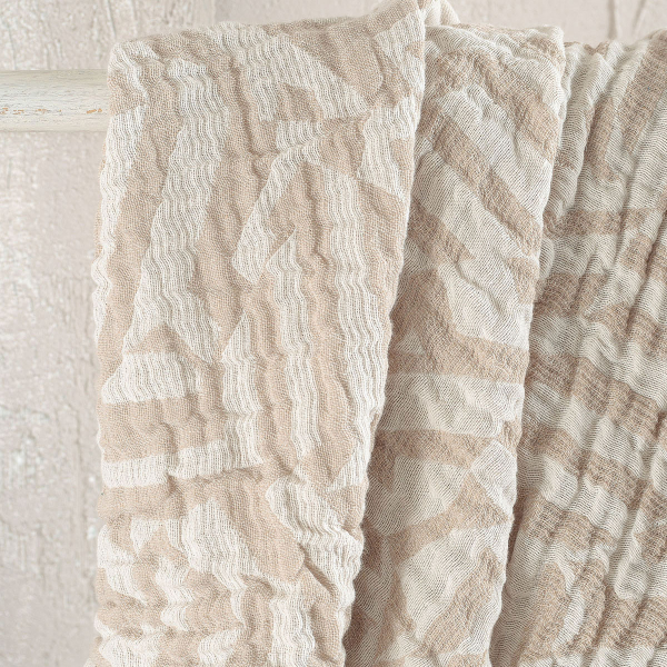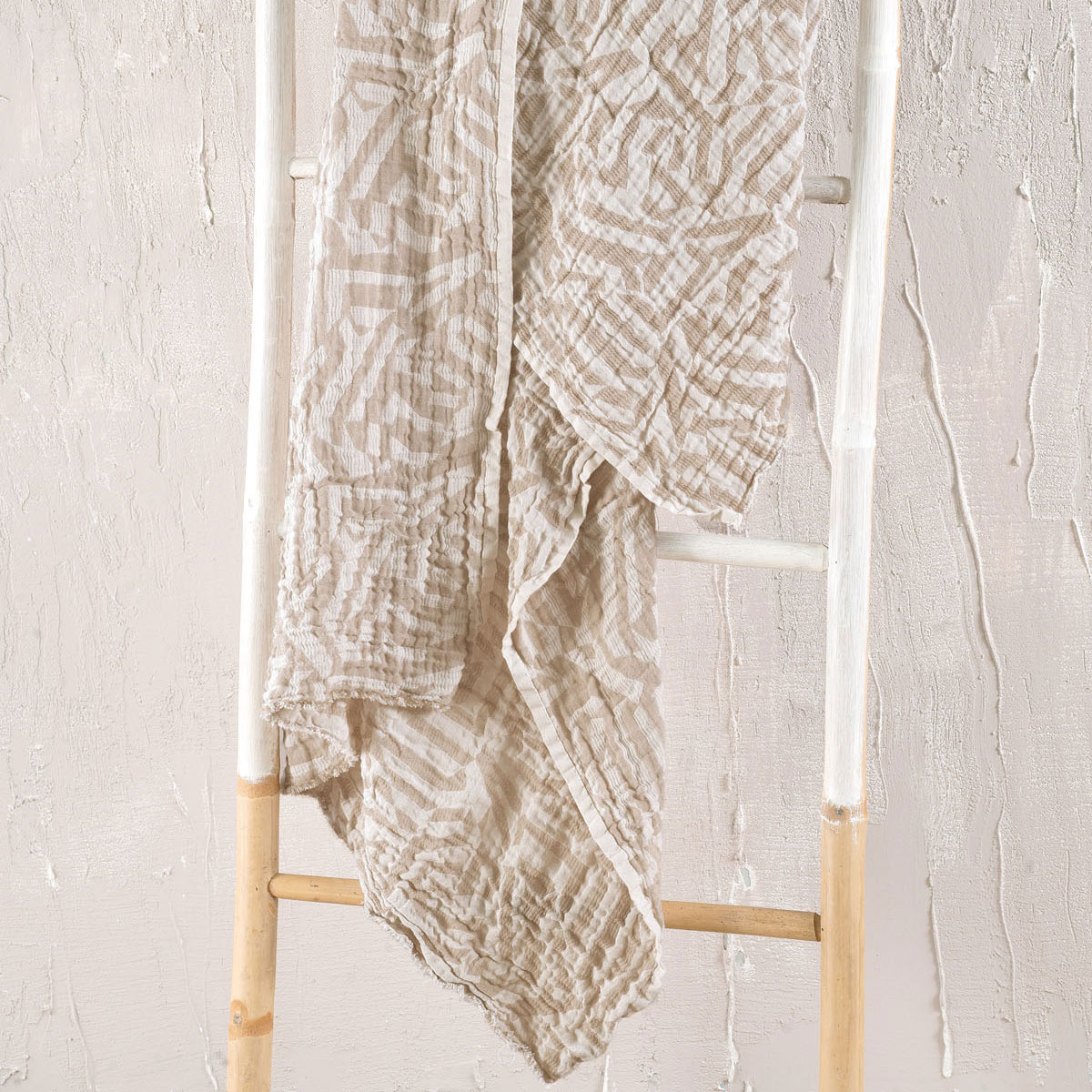 Πετσέτα θαλάσσης - παρεό σε μπεζ χρώμα, με εκρού λεπτομέρειες και μοντέρνο σχέδιο από την εταιρεία Rythmos. Είναι κατασκευασμένη από ζακάρ ύφασμα σύνθεσης 100% βαμβάκι που τη καθιστά ιδιαίτερα ανάλαφρη. Είτε τυλιχτείτε είτε τη στρώσετε στην ξαπλώστρα σας, θα σας είναι απαραίτητη στις διακοπές σας και θα τραβήξει όλα τα βλέμματα πάνω σας.