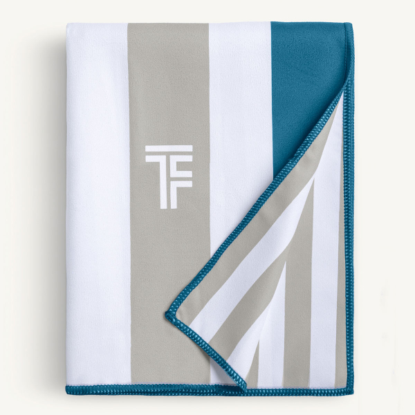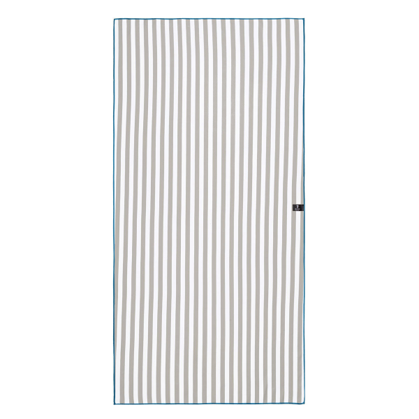 Πετσέτα θαλάσσης 2 όψεων από την εταιρεία Feel & Touch. Έχει ριγέ σχέδιο με την μία πλευρά να είναι σε πετρόλ-λευκό χρώμα με μπεζ λεπτομέρειες και η άλλη σε μπλε-λευκό χρώμα. Είναι κατασκευασμένη από 83% polyester-17% πολυαμίδιο με περιμετρικό ρέλι. Στεγνώνει γρήγορα, δεν κολλάει η άμμος πάνω της ενώ καταλαμβάνει μικρό χώρο διπλωμένη για να την μεταφέρετε εύκολα. Το νεσεσέρ είναι ιδανικό για τα καλλυντικά, την πετσέτα ή τα προσωπικά σας αντικείμενα ενώ έχει αδιάβροχη επένδυση, φερμουάρ για να κλείνει και ελαστική χειρολαβή. Ιδανικό σετ για το μπάνιο σας στην παραλία.