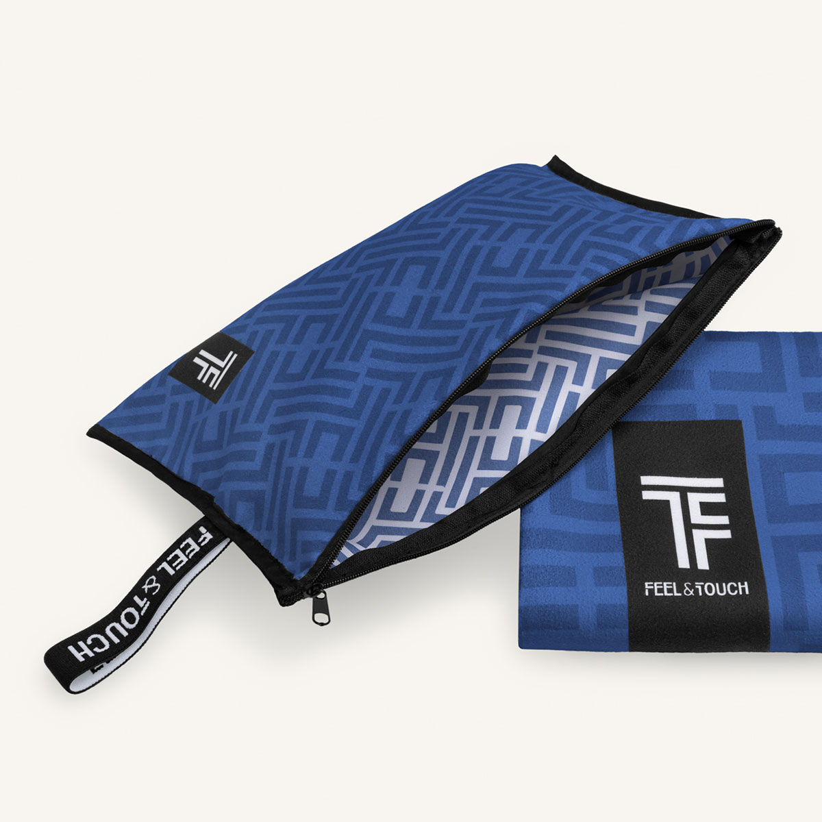 Πετσέτα θαλάσσης 2 όψεων από την εταιρεία Feel & Touch. Έχει μοντέρνο σχέδιο με την μία πλευρά να είναι σε εκρού-μπεζ αποχρώσεις και η άλλη σε μπεζ-λευκό χρώμα. Είναι κατασκευασμένη από 83% polyester-17% πολυαμίδιο με γαλάζιο περιμετρικό ρέλι. Στεγνώνει γρήγορα, δεν κολλάει η άμμος πάνω της ενώ καταλαμβάνει μικρό χώρο διπλωμένη για να την μεταφέρετε εύκολα. Το νεσεσέρ είναι ιδανικό για τα καλλυντικά, την πετσέτα ή τα προσωπικά σας αντικείμενα ενώ έχει αδιάβροχη επένδυση, φερμουάρ για να κλείνει και ελαστική χειρολαβή. Ιδανικό σετ για το μπάνιο σας στην παραλία.