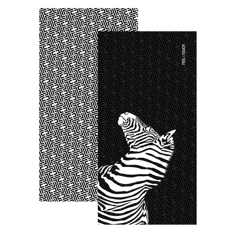 Πετσέτα θαλάσσης 2 όψεων από την εταιρεία Feel & Touch. Η μία μεριά είναι μαύρη με μοντέρνο σχέδιο και λευκές λεπτομέρειες, ενώ η άλλη μεριά έχει μοντέρνο μοτίβο σε μαύρο-λευκό χρώμα. Είναι κατασκευασμένη από 83% polyester-17% πολυαμίδιο με περιμετρικό ρέλι. Στεγνώνει γρήγορα, δεν κολλάει η άμμος πάνω της ενώ καταλαμβάνει μικρό χώρο διπλωμένη για να την μεταφέρετε εύκολα. Ιδανική για το μπάνιο σας στην παραλία.