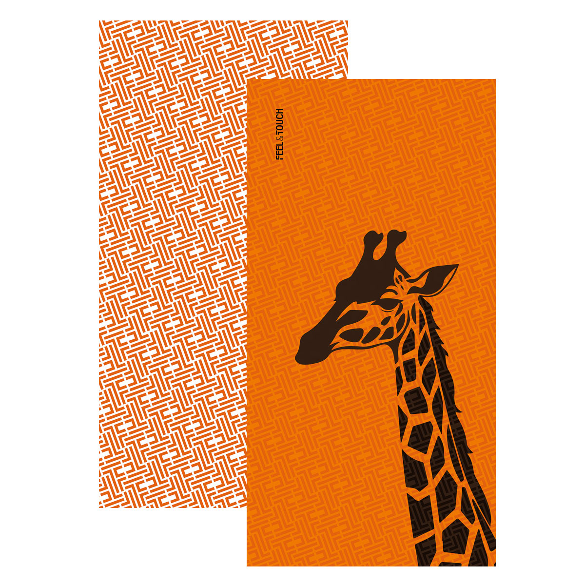 Πετσέτα θαλάσσης 2 όψεων από την εταιρεία Feel & Touch. Η μία μεριά είναι πορτοκαλί με μοντέρνο σχέδιο σε καφέ χρώμα, ενώ η άλλη μεριά έχει μοντέρνο μοτίβο σε πορτοκαλί-λευκό χρώμα. Είναι κατασκευασμένη από 83% polyester-17% πολυαμίδιο με περιμετρικό ρέλι. Στεγνώνει γρήγορα, δεν κολλάει η άμμος πάνω της ενώ καταλαμβάνει μικρό χώρο διπλωμένη για να την μεταφέρετε εύκολα. Ιδανική για το μπάνιο σας στην παραλία.