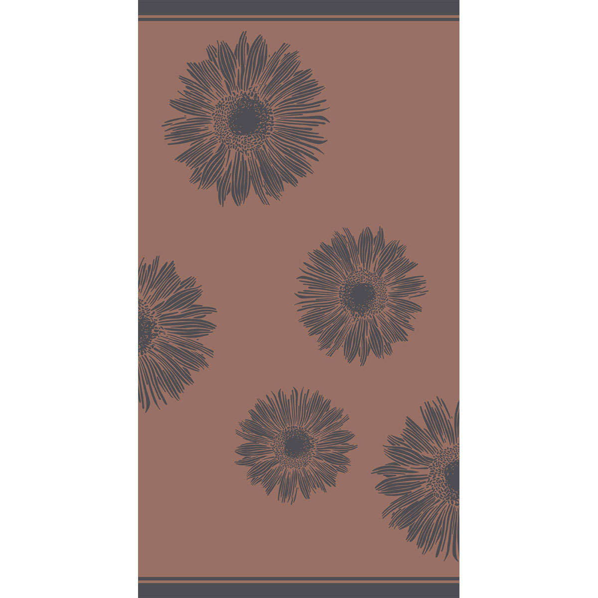 Πετσέτα θαλάσσης σε καφέ χρώμα, με μαύρες λεπτομέρειες και φλοράλ σχέδιο από την εταιρεία Melinen. Η σύνθεσή της είναι 100% βαμβάκι ζακάρ βάρους 580 gsm, που την καθιστά απαλή και ιδιαίτερα απορροφητική. Μοναδική πετσέτα με ποιότητα και στυλ για τις εμφανίσεις σας στην παραλία.