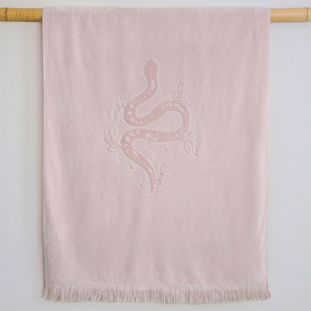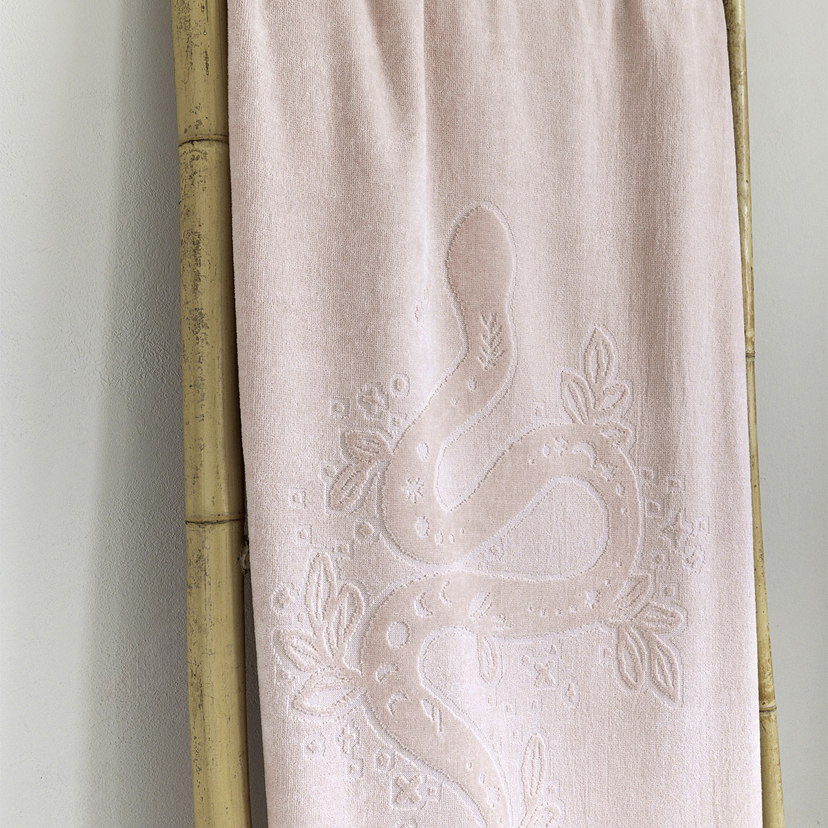 Πετσέτα θαλάσσης από την εταιρεία Nima σε ροζ απόχρωση με ανάγλυφο σχέδιο και κρόσια στο τελείωμα. Η σύνθεσή της είναι 100% βαμβάκι ζακάρ 420gsm. Η μία πλευρά της είναι βελουτέ για απαλότητα και η άλλη είναι πετσετέ για απορροφητικότητα. Συνδυάστε την με τα υπόλοιπα είδη θαλάσσης της ίδιας συλλογής.