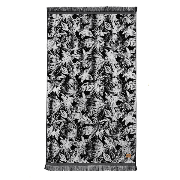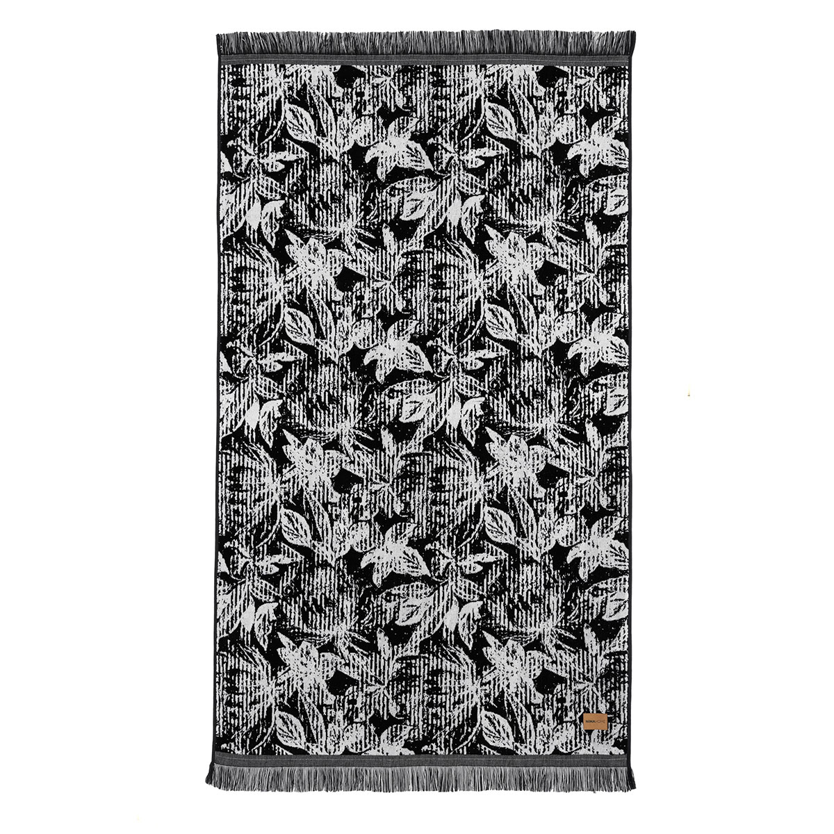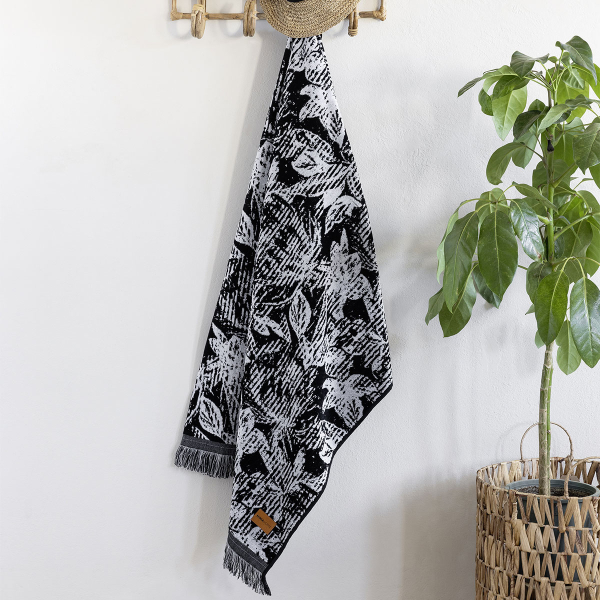 Πετσέτα θαλάσσης σε μαύρο χρώμα, με γκρι λεπτομέρειες και φλοράλ σχέδιο από την εταιρεία Nima. Η σύνθεσή της είναι 100% βαμβάκι ζακάρ 420gsm που την καθιστά απορροφητική και ανθεκτική. Διαθέτει κρόσια στο τελείωμα. Η μία πλευρά της είναι βελουτέ για απαλότητα και η άλλη είναι πετσετέ για απορροφητικότητα. Μοναδική πετσέτα με ποιότητα και στυλ για τις εμφανίσεις σας στην παραλία.