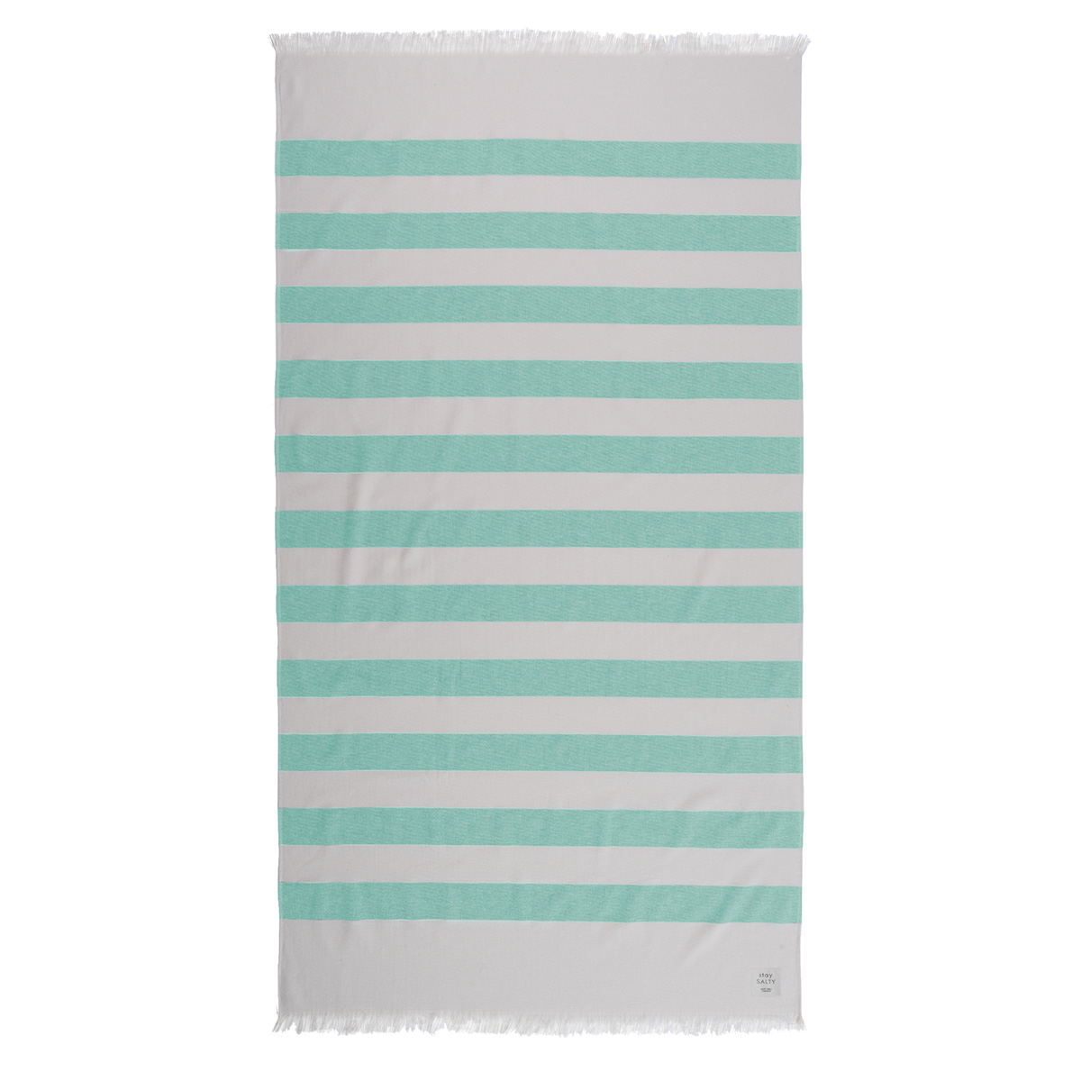 Πετσέτα θαλάσσης από την εταιρεία Nef-Nef που προσφέρει ποιότητα, στυλ και πολυτέλεια. Σε τυρκουάζ χρώμα, με λευκές λεπτομέρειες και ριγέ σχέδιο. Είναι κατασκευασμένη από ζακάρ φροτέ ύφασμα σύνθεσης 100% βαμβάκι βάρους 380gsm. Μοναδική πετσέτα με ποιότητα και στυλ για τις εμφανίσεις σας στην παραλία.