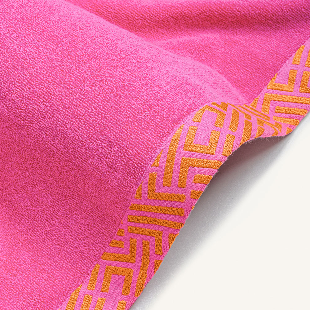 Πετσέτα θαλάσσης από την εταιρεία Feel & Touch σε φούξια χρώμα με πορτοκαλί λεπτομέρειες στο τελείωμα. Είναι βελουτέ, κατασκευασμένη από 100% βαμβάκι που προσφέρει απορροφητικότητα και απαλότητα. Ιδανική για να την έχετε στην τσάντα σας για το μπάνιο στην παραλία ή την πισίνα καθώς πιάνει μικρότερο χώρο από τις υπόλοιπες πετσέτες όταν είναι διπλωμένη. Συνδυάστε την με τα υπόλοιπα είδη της ίδιας σειράς για ένα ολοκληρωμένο σετ.